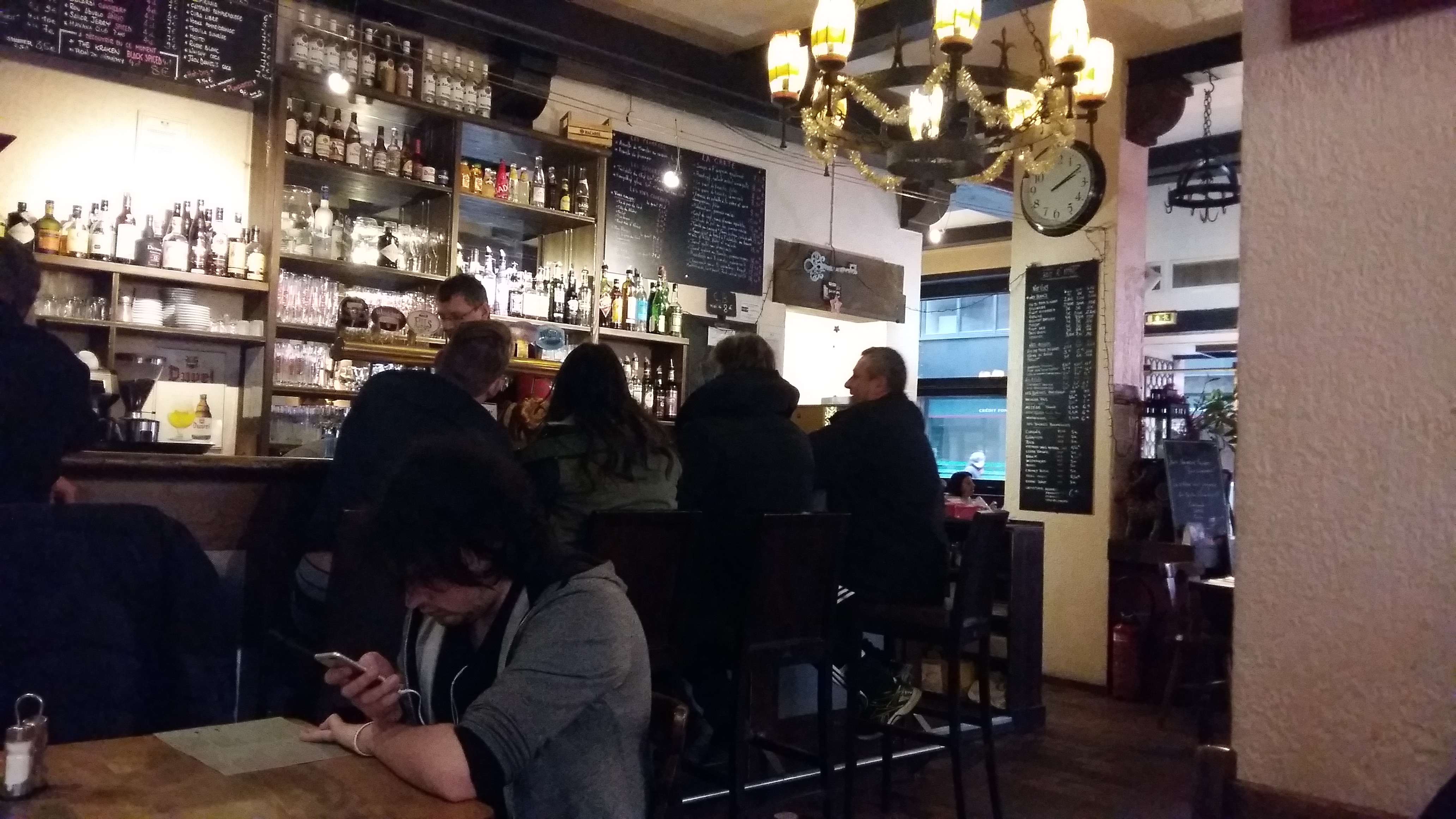 Café de quartier à l ancienne où les habitués se retrouvent mais convient également à des touristes de passage ou des étudiants comme des collègues en afterwork. Plat de jour a midi toujours top, tartes flambées et planchettes le soir