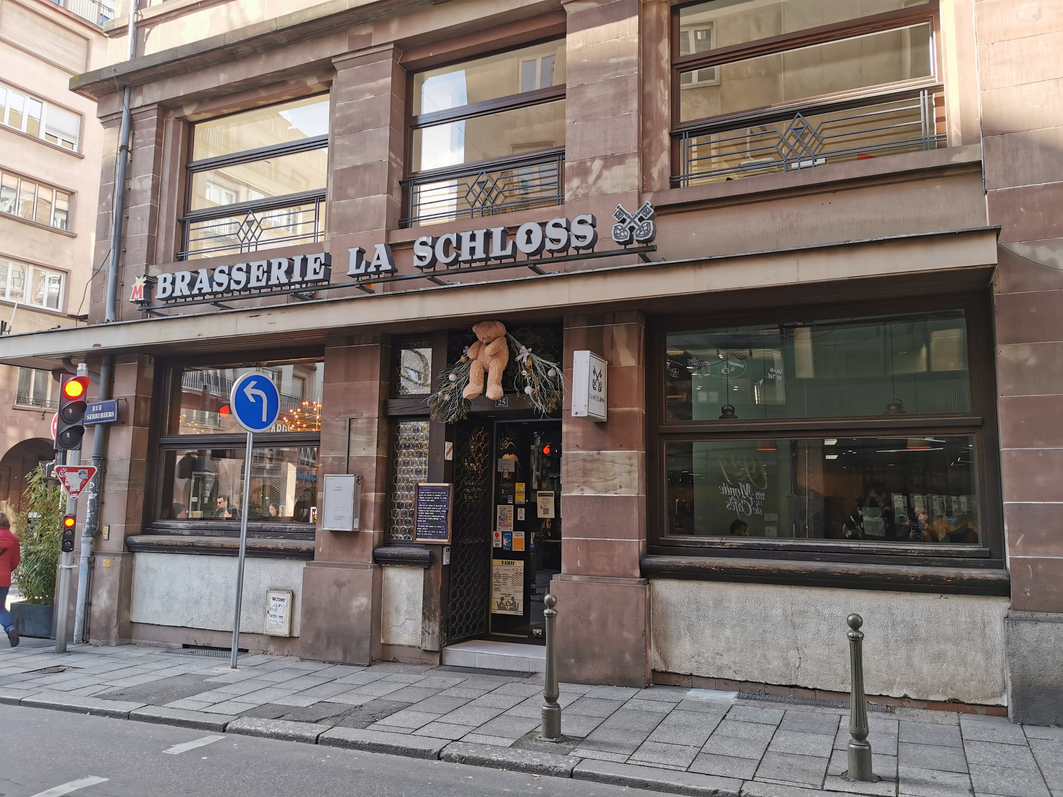 La Brasserie La Schloss, également connue sous le nom de Schlosserstub, est un restaurant traditionnel alsacien situé au 25 rue des Serruriers à Strasbourg, idéalement situé entre la cathédrale Notre Dame et le quartier de La Petite France. L'établissement offre une ambiance chaleureuse, doté d'un bar proposant un large choix de bières et de cocktails. Au menu, des spécialités régionales comme le feuilleté de canard, le risotto au butternut rôti et les tartelettes flambées le week-end après 18h (18h). La cuisine reste ouverte tard et sert jusqu'à 1h30 du matin les vendredis et samedis. Les réservations peuvent être effectuées en appelant le 03 88 32 02 60. Les clients ont loué les portions généreuses, les repas délicieux et le personnel amical et anglophone. Le restaurant est accessible par le Tram A ou D, avec l'arrêt Langstross Grand'Rue à proximité. (brasserie-la-schloss.fr, tripadvisor.com, facebook.com)