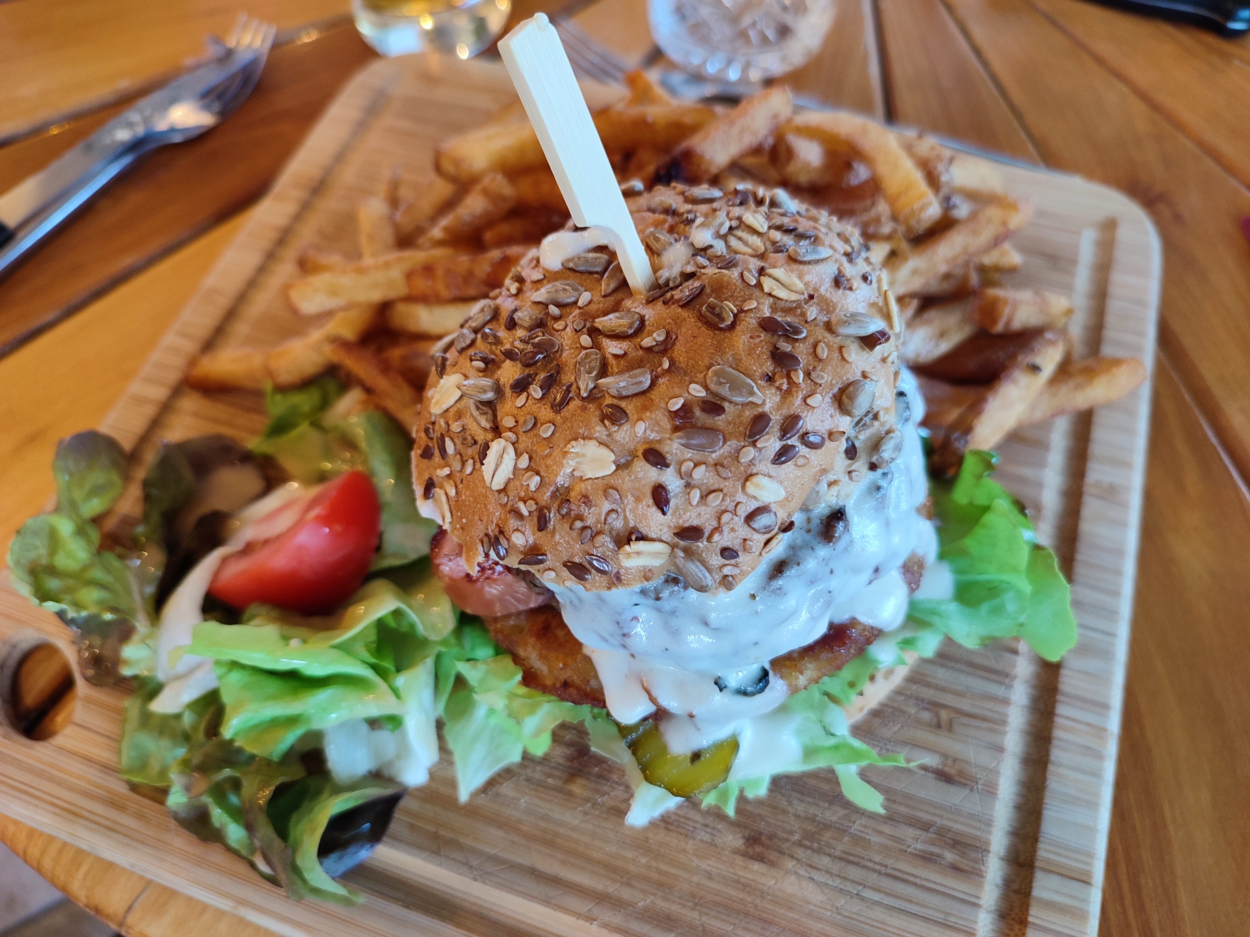 Super décoration plats régionaux servis sur planche de bonne qualité. Avons bien aimé