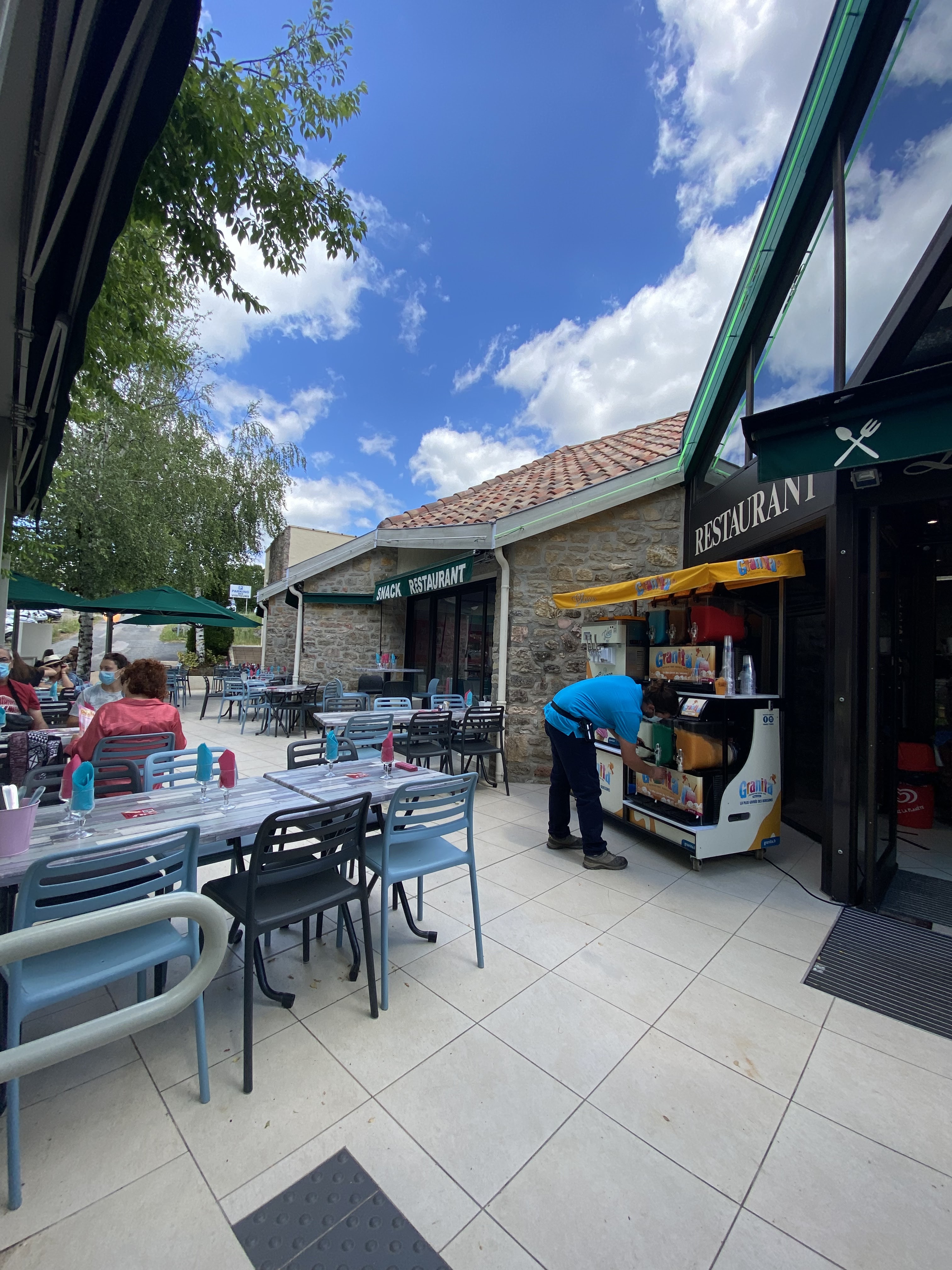 Accueil déplorable personne au bout de 5min On se dirige nous même au comptoir et on attend encore 3min avant qu’on s’occupe de nous plusieurs serveur(se) nous passe devant sans rien faire, juste nous regarde. Plusieurs serveur(se) assis a une table à discuter sans se préoccupé des clients en salle qui attendent d’être servis ou de commander. Si on avais pas réclamer notre dessert jamais on l’aurai eu. Je vais le déconseiller à toutes ma famille et amis qui avais prévu de faire le gouffre de padirac, et vous le déconseille à vous aussi si vous voulez pas être déçu. Ps: terrasse envahis de mouche