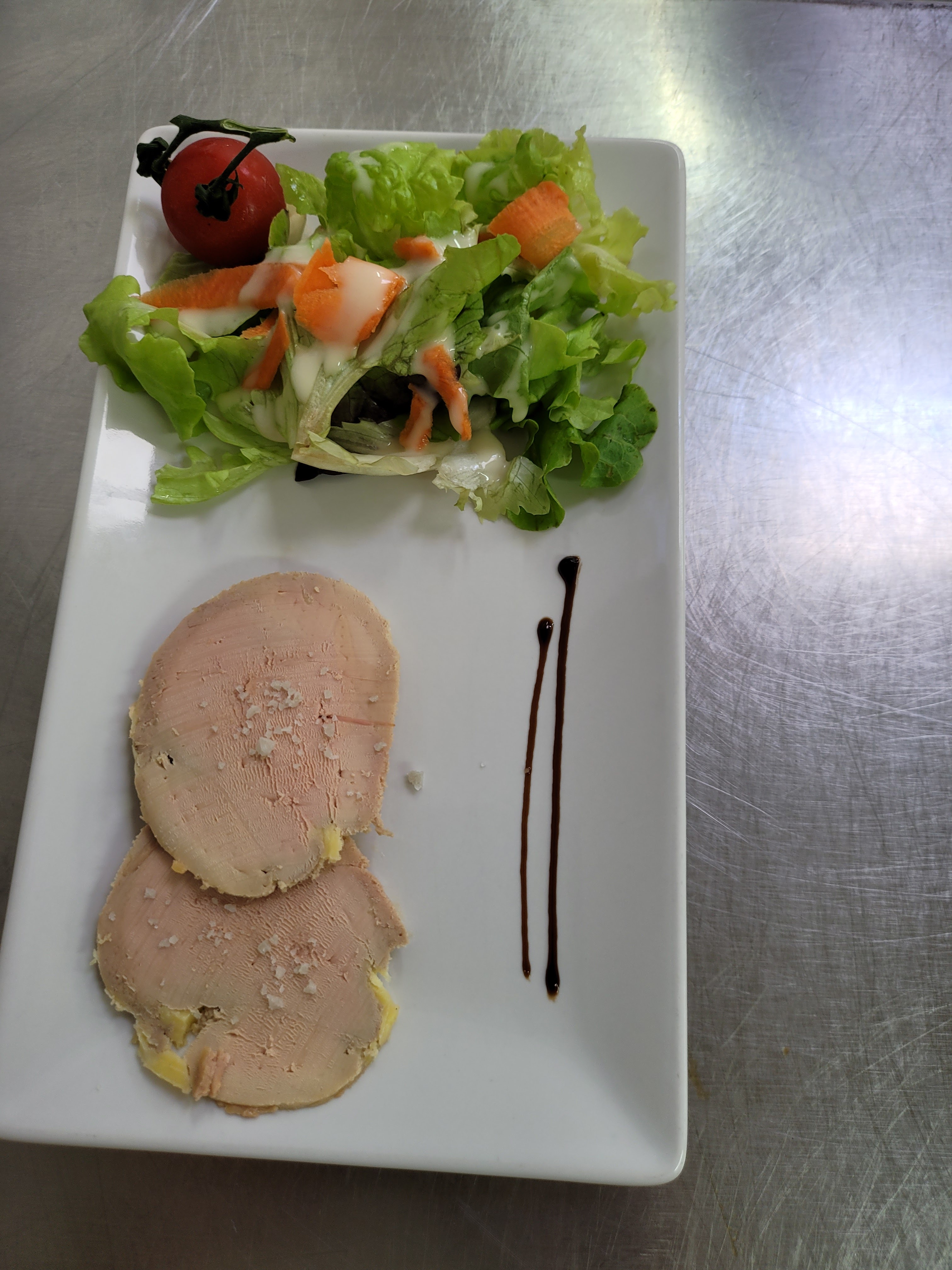 Très bon aligot, la saucisse avec était un peu sèche. Pour ma part le canard était bon par contre l’accompagné d’une seule pomme de terre de taille moyenne cela fais un peu léger. En dessert crêpes au sucre et tiramisu bon en général. Ce n’est pas de la grande cuisine mais ça dépanne. Personnel sympas