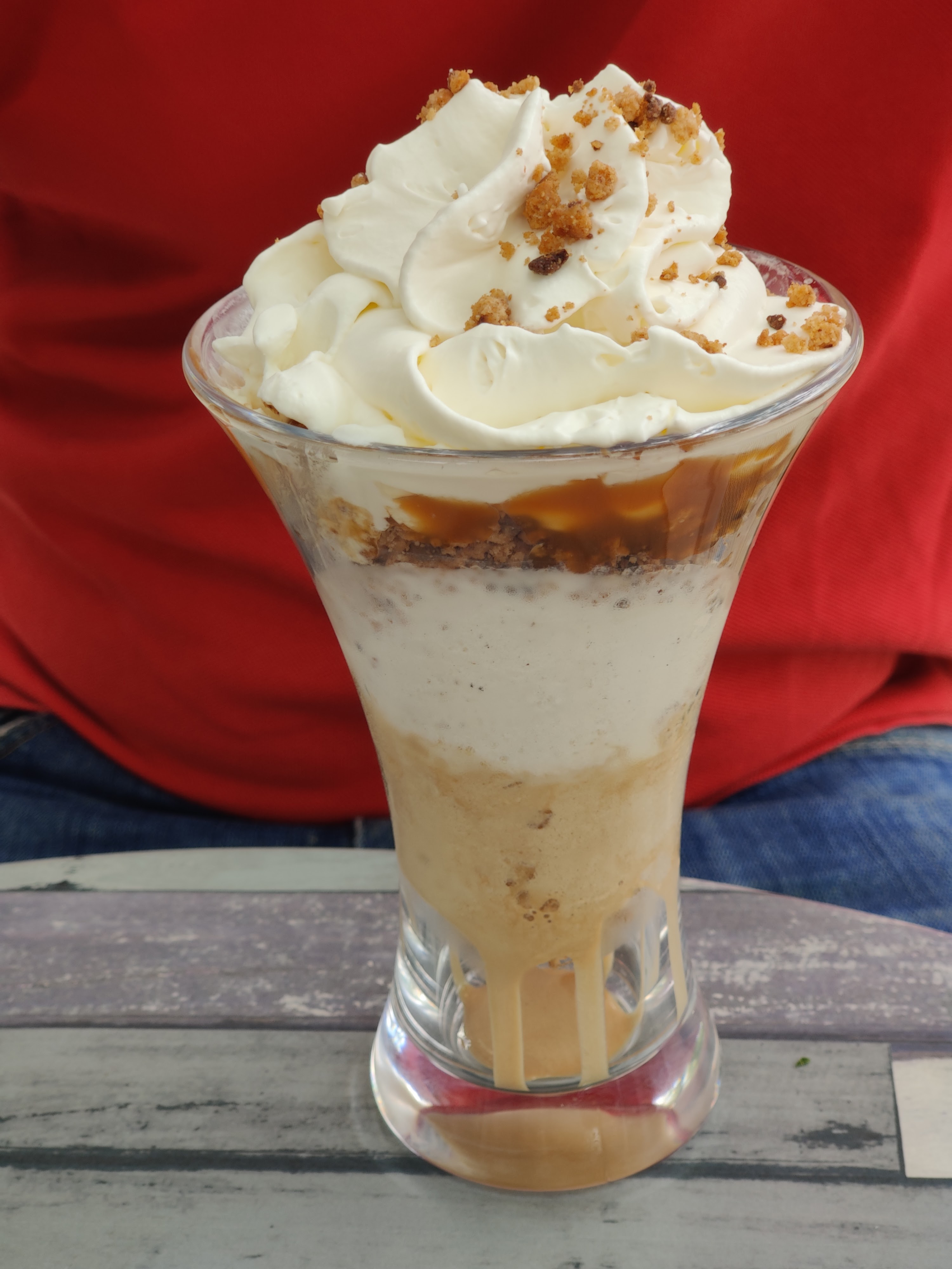 Quoi de mieux qu’une coupe glacée après la visite du gouffre de Padirac ? La brasserie « Les Visiteurs » bien qu’arborant un design d’intérieur très particulier digne d’un commerce de bouche du « Strip » de Las Vegas, dispose d’un large choix de glaces et sorbets en tout genre. Les coupes glacées sont généreuses et délicieuses avec chantilly maison. Un régal !