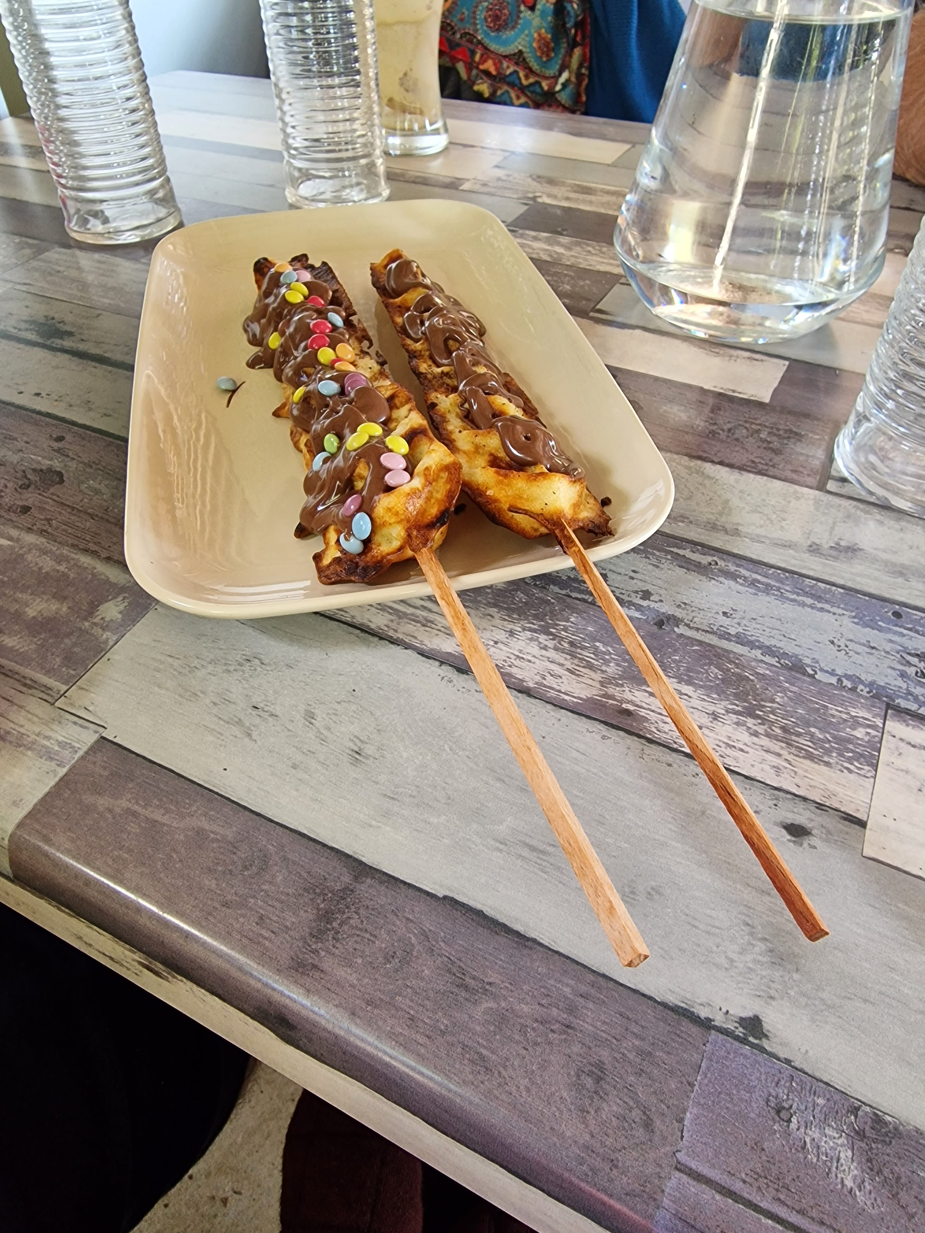 Le principe d'une gaufre sucette est qu'elle est sur bâton en bois et nos serviettes sont posées sur la table mais passez de bonne vacances quand même