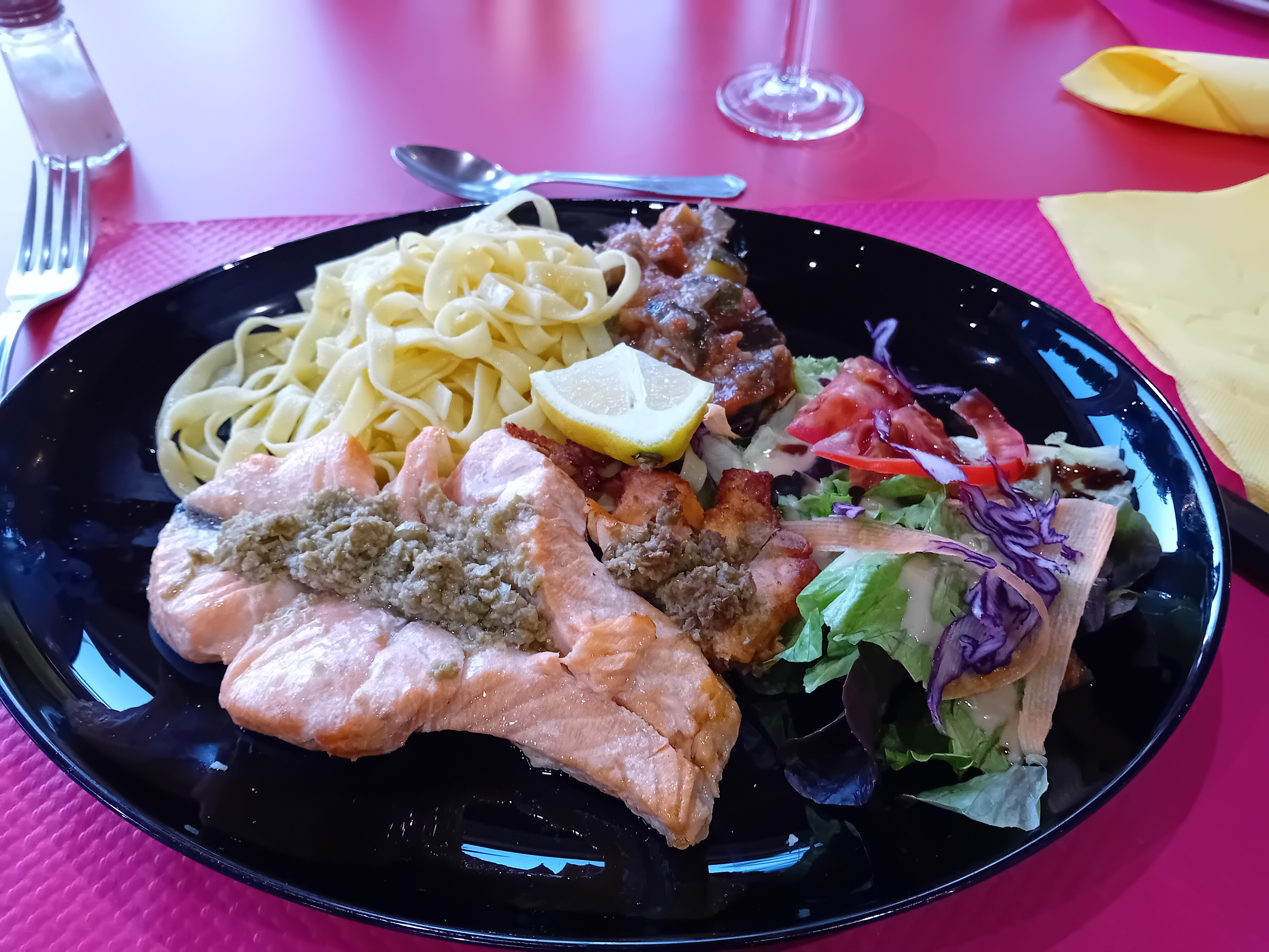 Très beau restaurant et bon accueil Concernant le repas : la formule à 16 € : grande assiette mi pizza au choix et mi salade au choix, est exquis Pour le repas enfant, proposition d'un supplément de pâte est très gentil . Côté dessert, c'était très bien Allez y les yeux fermés