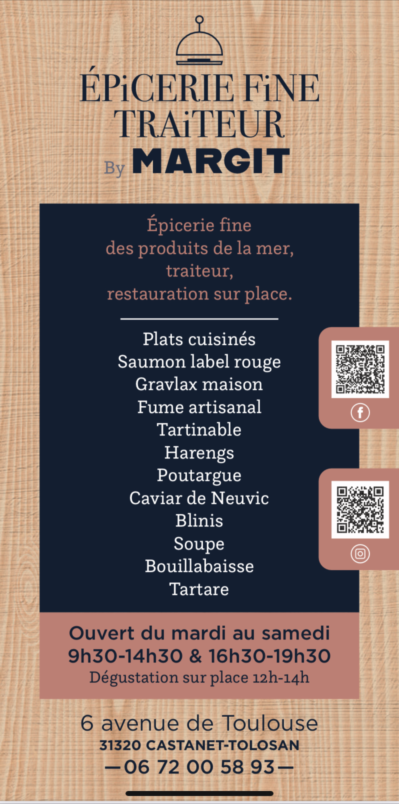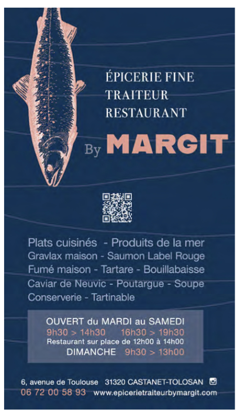 À la fois restaurant, épicerie fine et bien sûr traiteur, le tout autour des produits de la mer et plus particulièrement autour du saumon merveilleusement préparé par Siri, qui nous le propose de toutes les manières ( mariné, en tartare ou en ceviche, fumé, gravlax, frais et cuisiné en plat du jour….) Vous avez aimé leur restaurant Tante MARGIT en centre ville de Toulouse, venez découvrir le concept novateur développé chez By MARGIT à Castanet-Tolosan