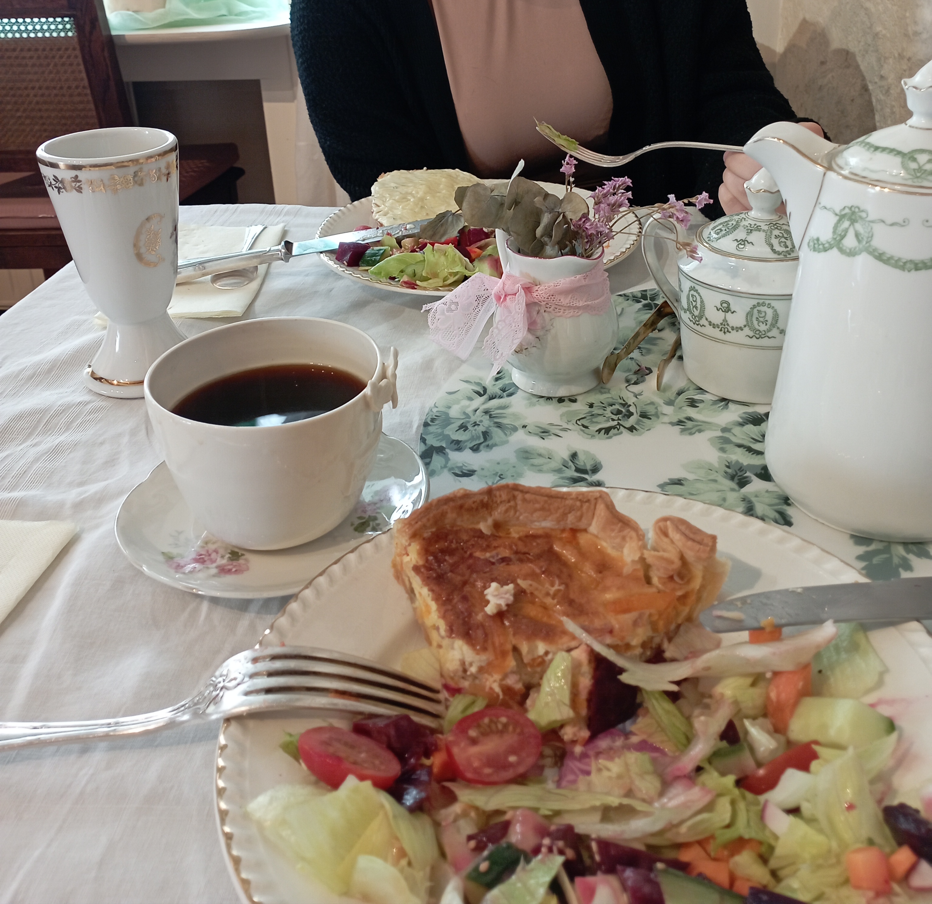 Excellent, un charmant petit café avec un menu simple et excellent pour le déjeuner, une pâtisserie et des conseils sur la région pour les propriétaires, j'ai même essayé de téléphoner à l'antiquaire local pour un objet que mon ami voulait. Si vous allez au château après, vous pouvez acheter un billet à prix réduit dans le cadre d'un menu fixe.