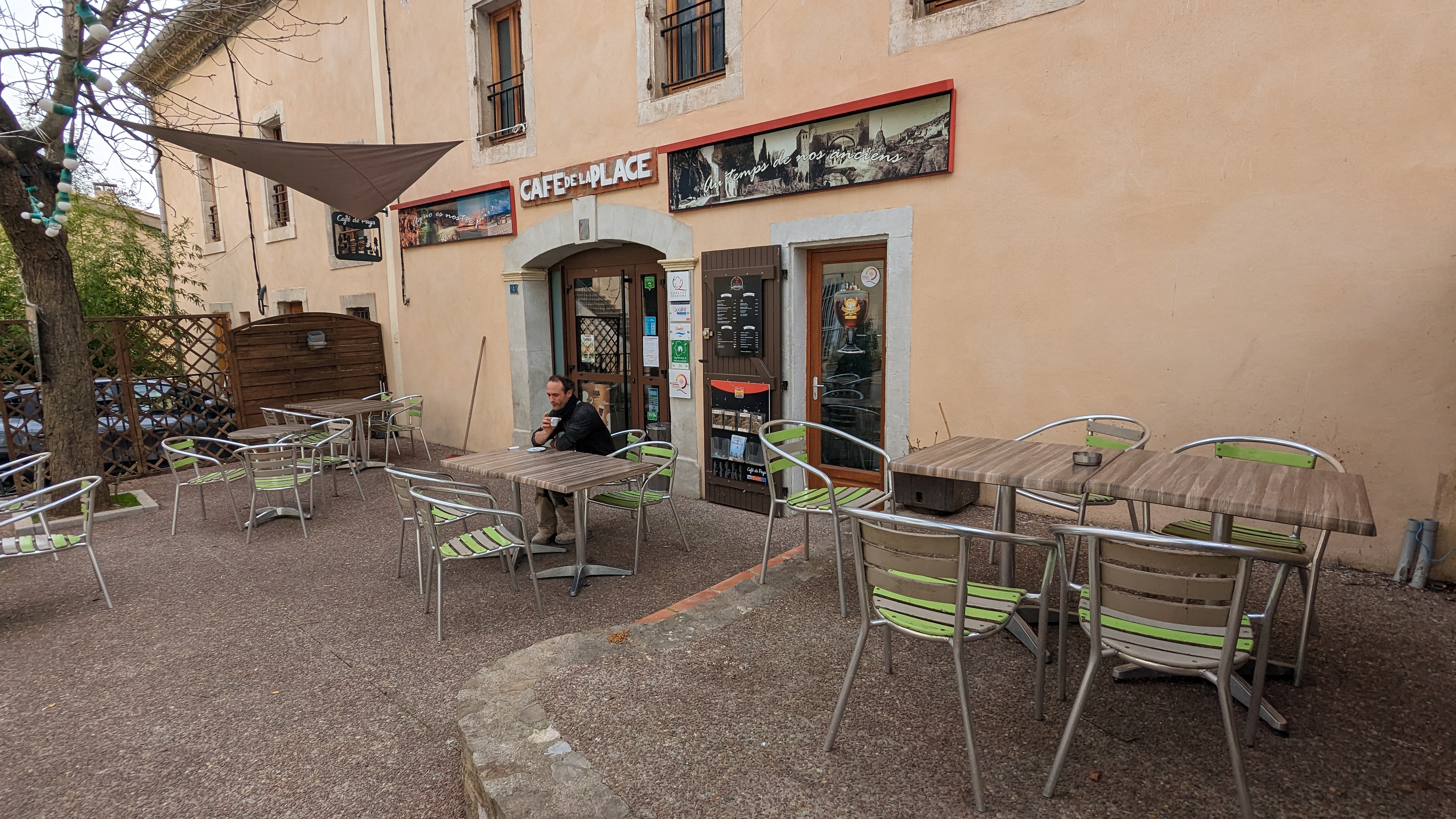 LE Café de la Place. Cuisine roborative et accueil sympathique sous de vénérables playanes, de vrais trognes du sud, habitants d'un superbe (et minuscule) village troglodyte. Toute une ambiance. Pour boire une bière en solo ou dévorer une solide entrecôte entouré par ses amis ou sa famille, ,au choix.