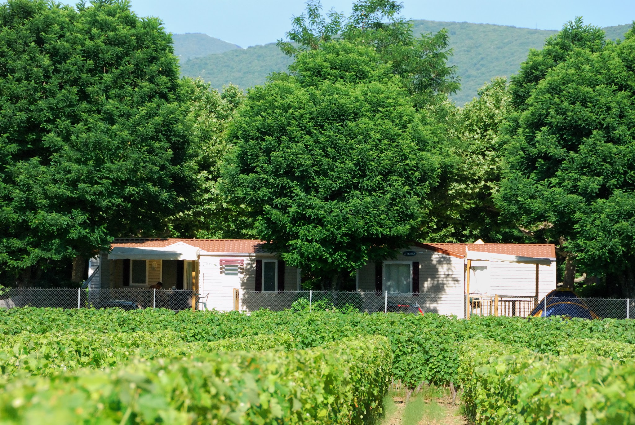 Camping très sympa. Emplacements espacés. Vue sur les vignes et les Montagnes. Proche de la rivière et de vallon pont d arc. Nous avons adoré sa dimension familiale et l accueil chaleureux aussi bien au niveau de la réception que du bar et de la supérette. Nous recommandons.