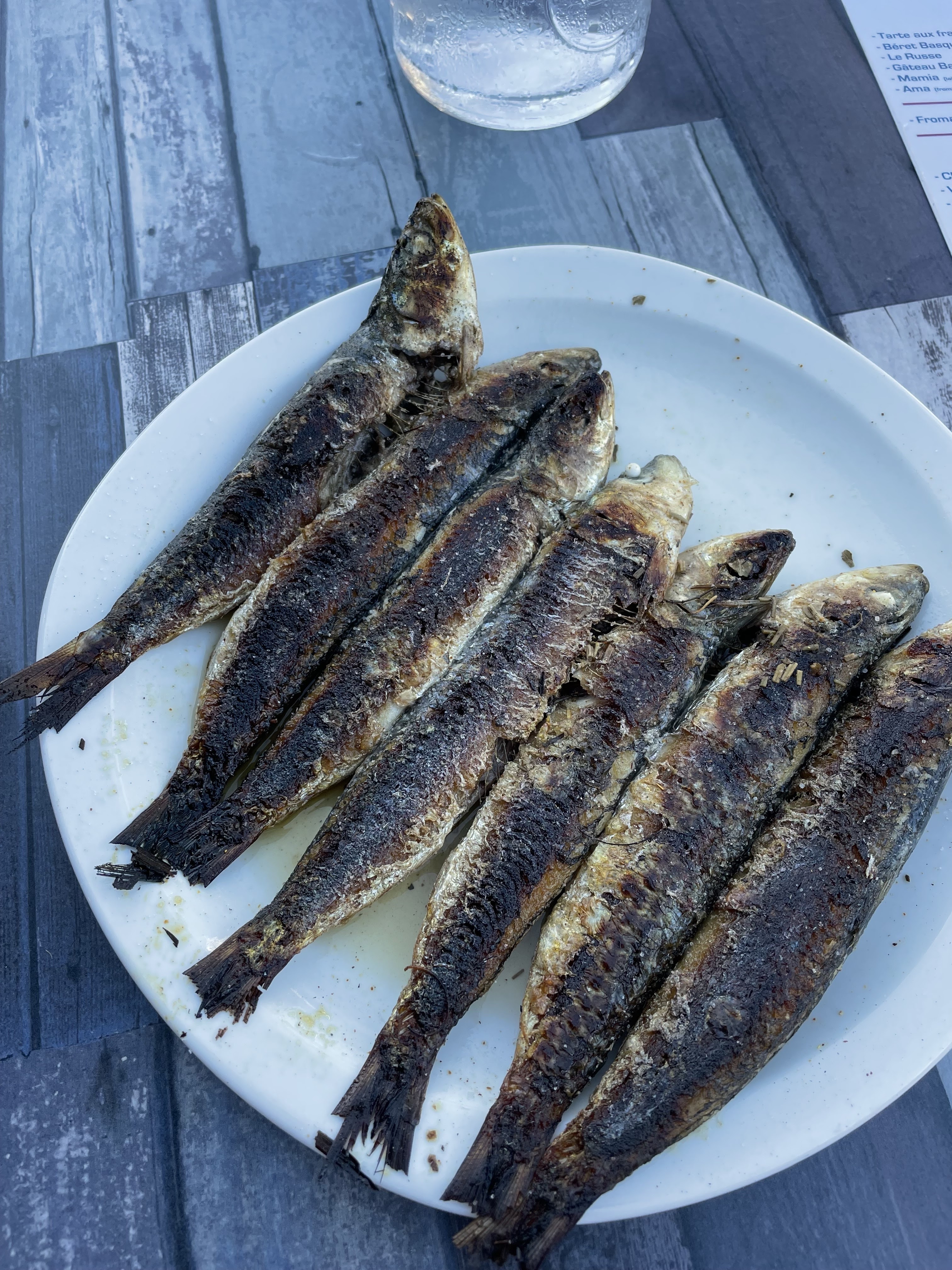 Un délice de sardines et gambas avec vue sur le petit port de Biarritz une très belle adresse !!