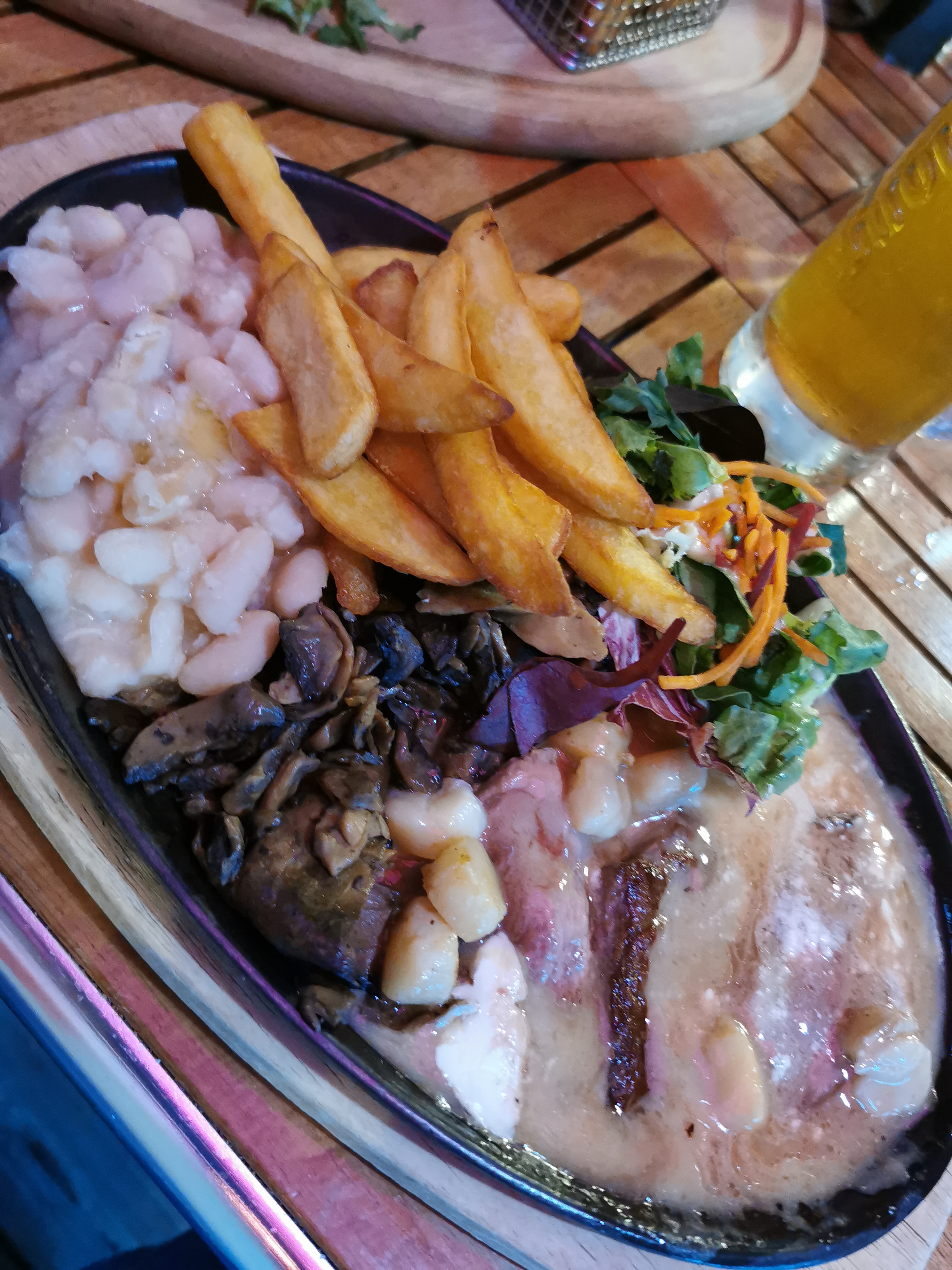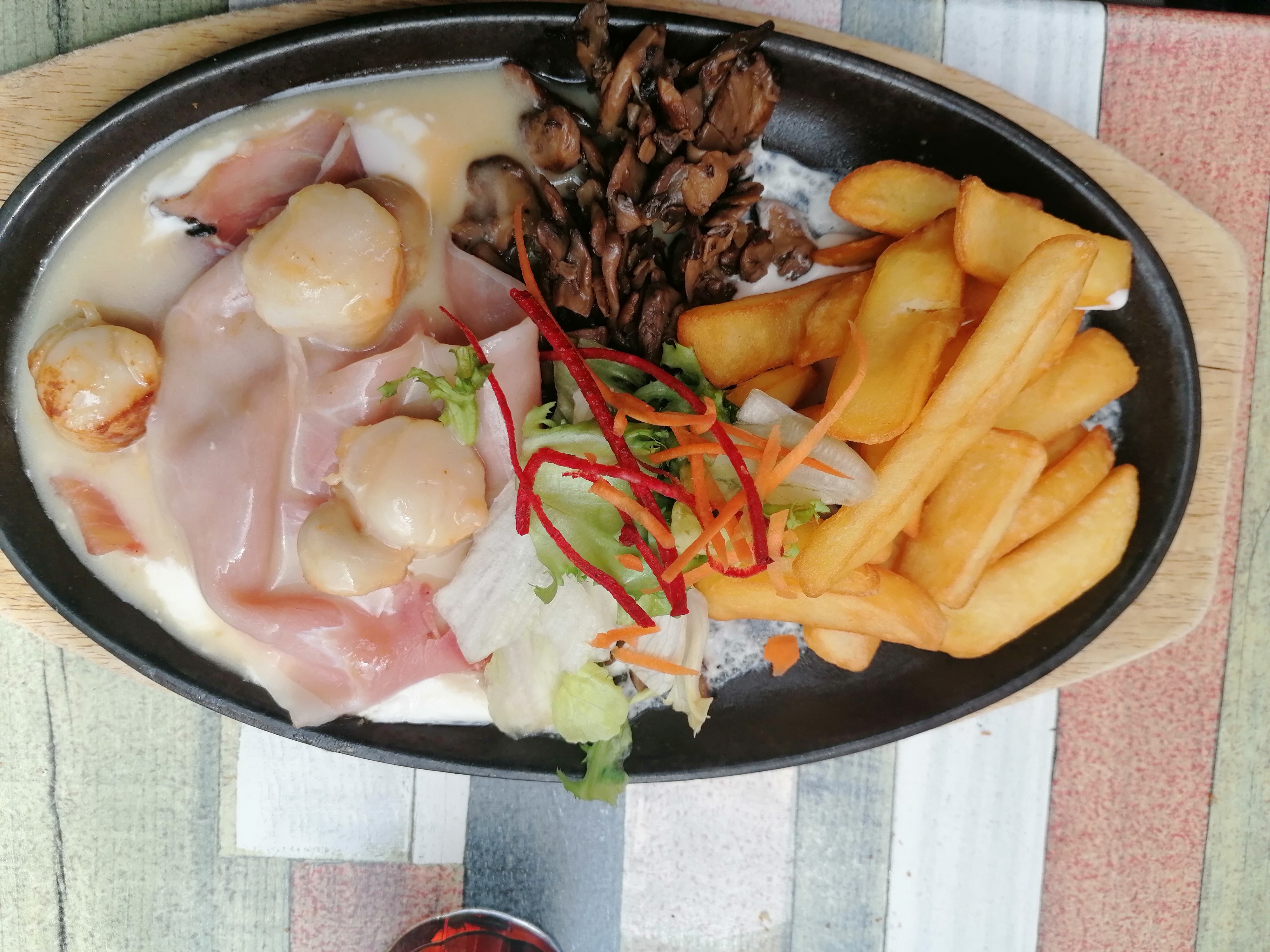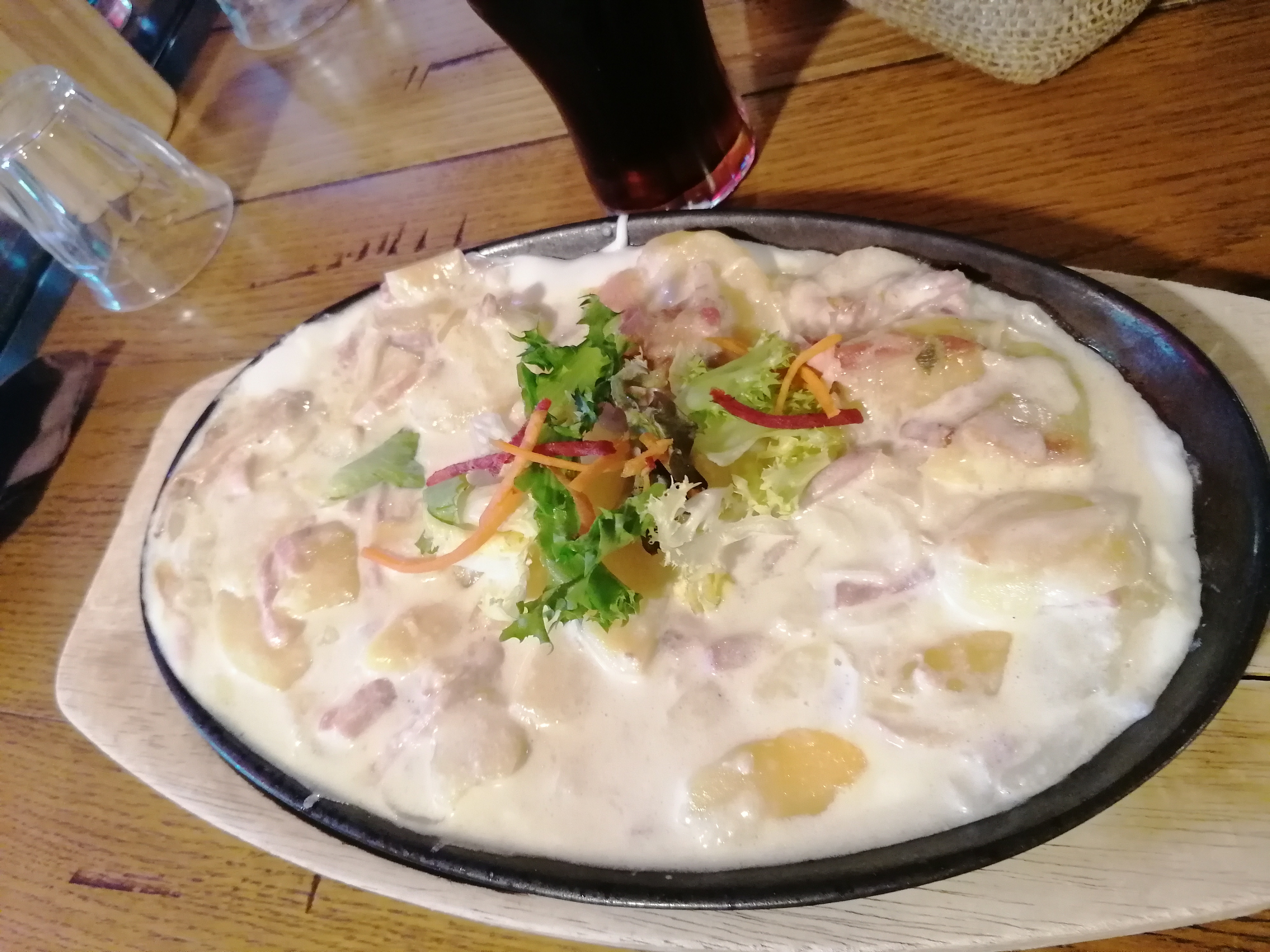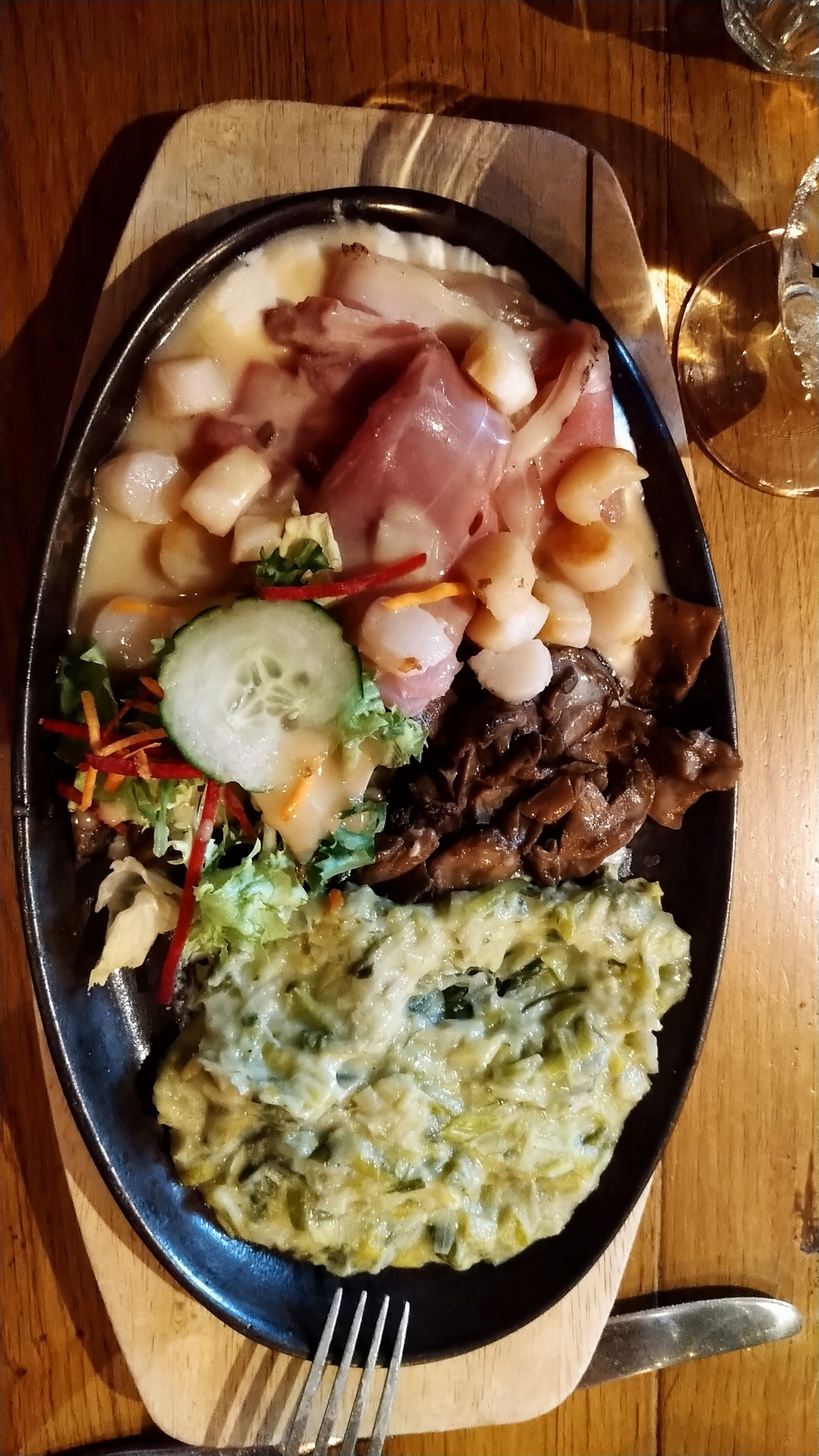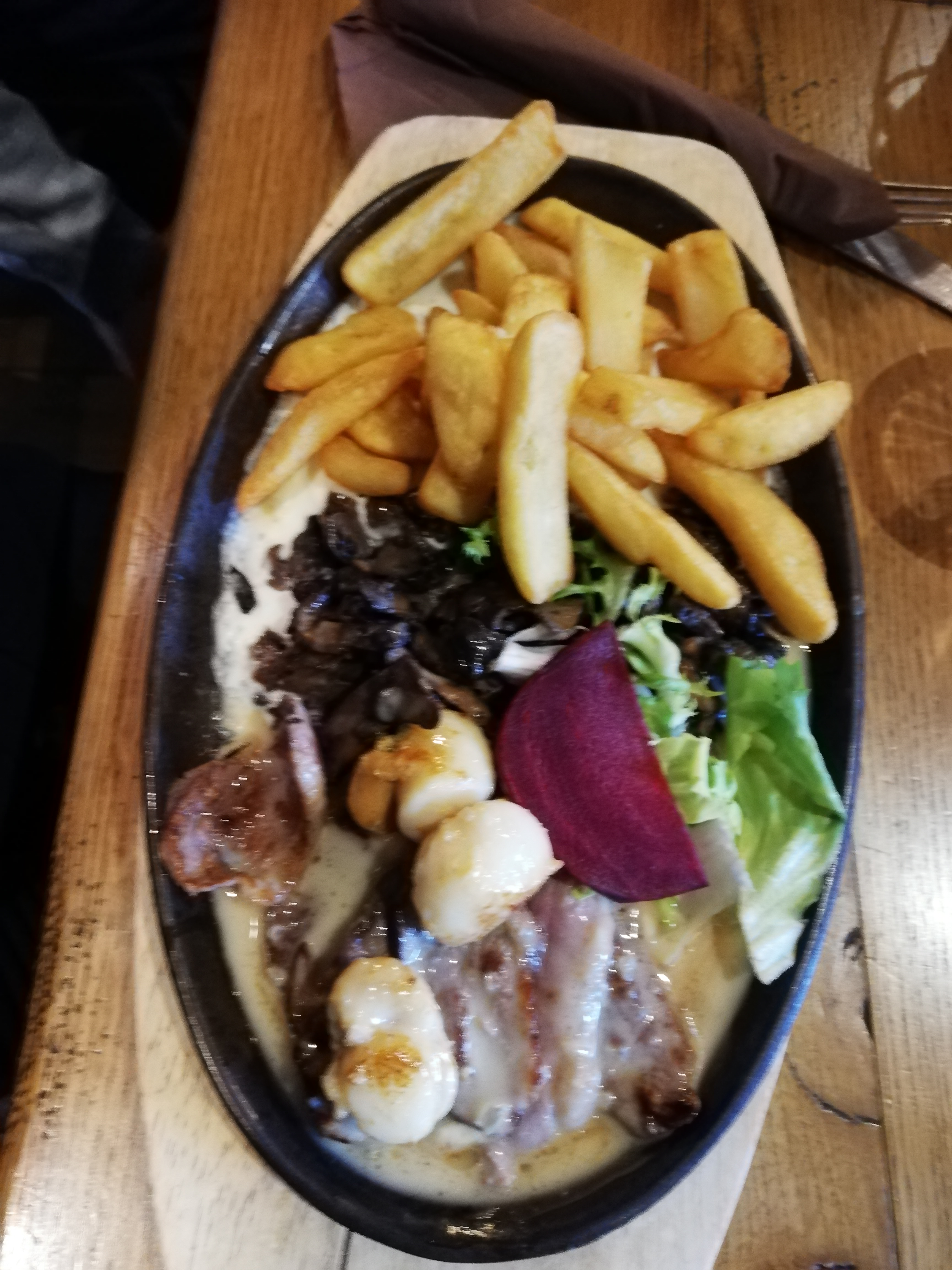 Lieu atypique et décoration vraiment sympathique. Le service et l'accueil sont aux rendez-vous et plutôt rapides. En revanche les poêlées sont moyennes (et nous avons même eu mal au ventre la nuit, d'où la note) et le prix est trop élevé. Repas à 4 personnes dont 2 enfants.