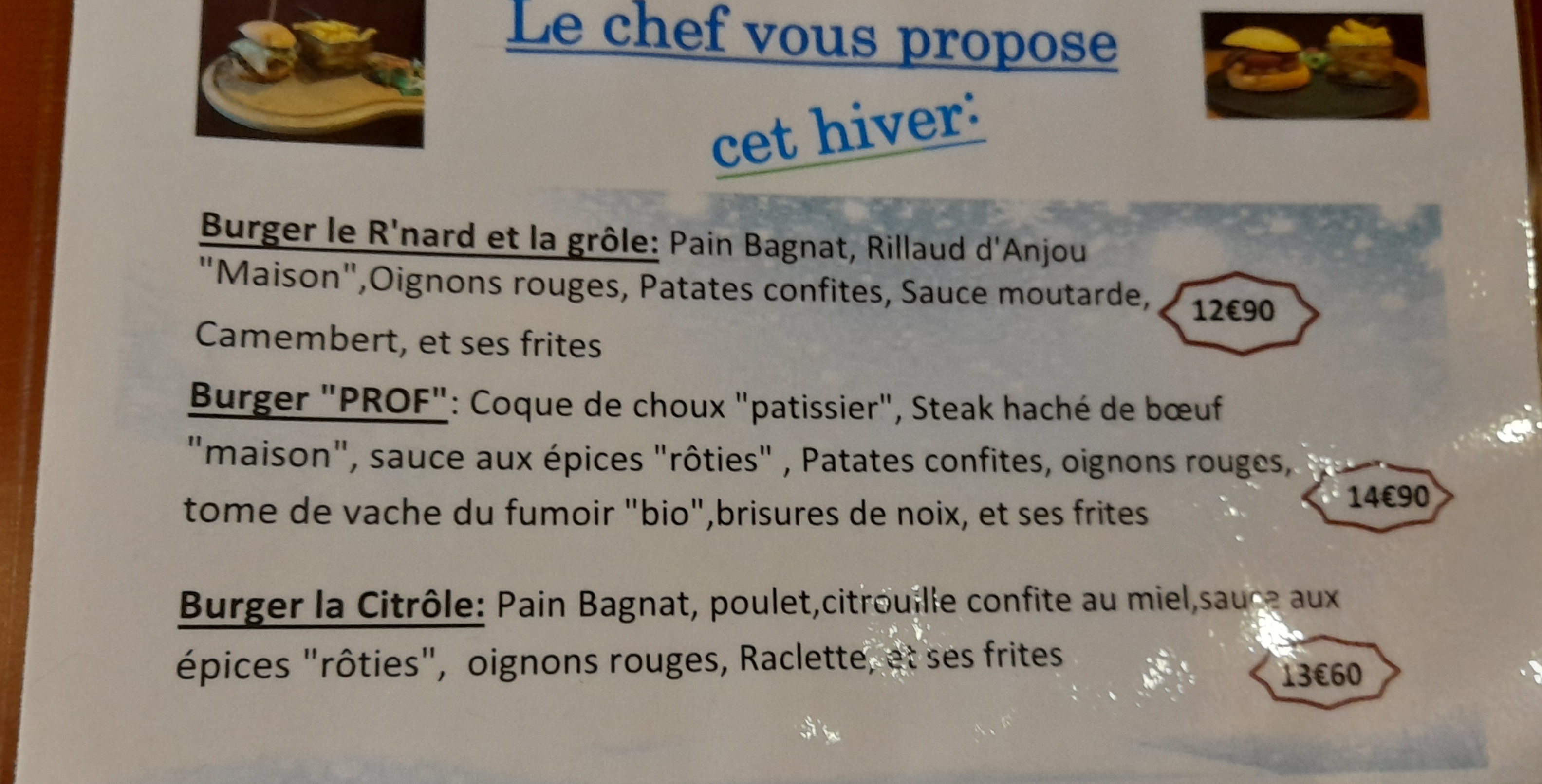 Très bon accueil, repas frais et copieux, menu humoristique et ainsi que le personnel, décor sympathique . Je recommande vivement