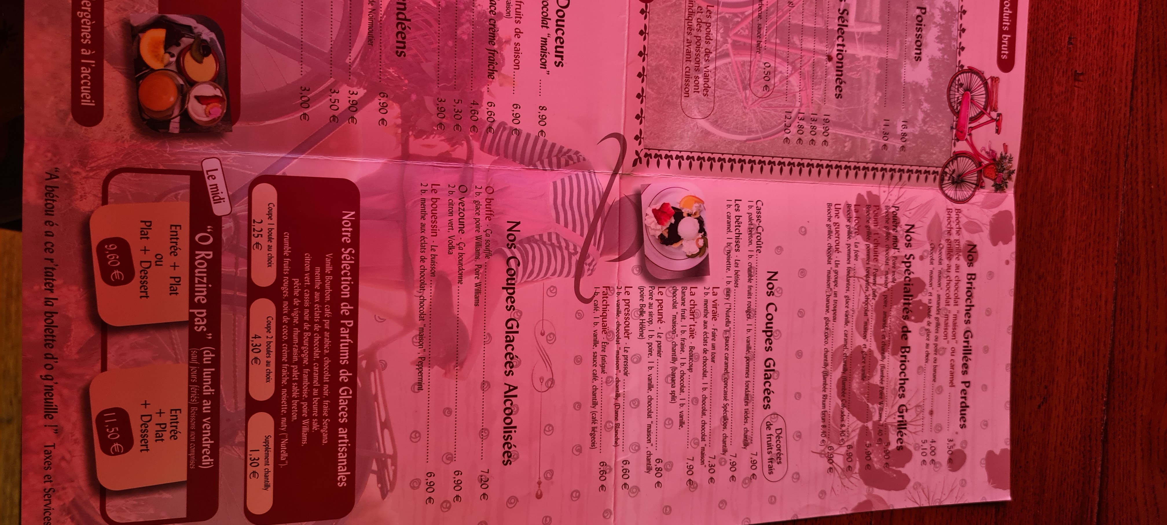 Nous avons pris le menu du jour avec un tarif correct. Si le plat était très bon (fricassée de calamars), les portions de l'entrée (5 bulots ) et du dessert ( une petite part de tarte aux myrtilles) étaient un peu justes quand même. Reste que les propositions à la carte que nous avons déjà goûtées auparavant sont très bonnes quoique plus onéreuses bien sûr. La décoration quant à elle est super originale. Côté menu enfant, les portions et le prix sont très bien.