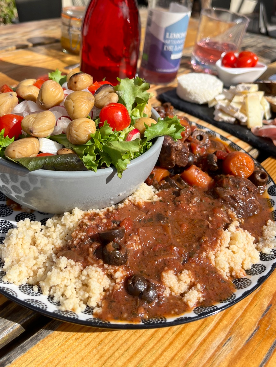 Produits du terroir et accueil chaleureux : planches, salades, épicerie vrac
