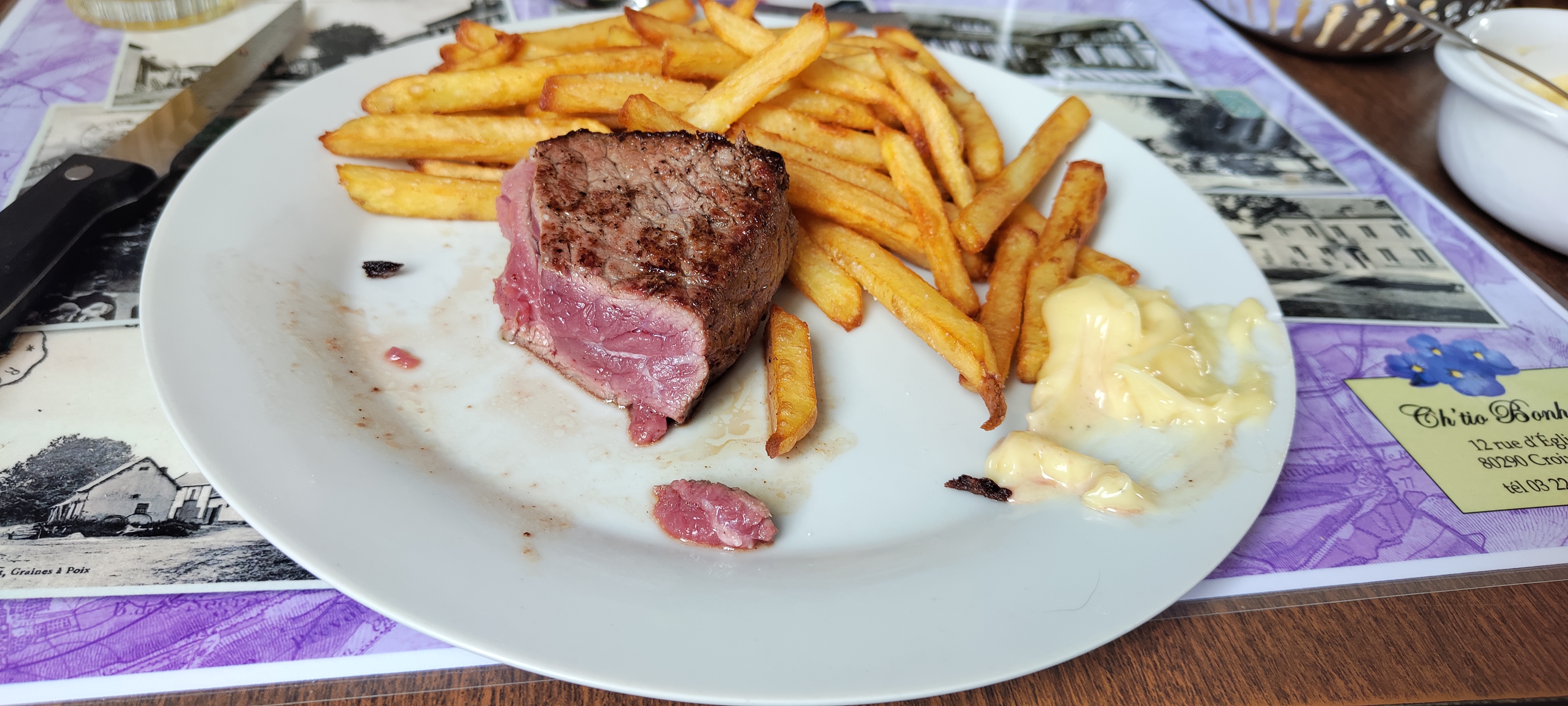 Super petit restau local, dans un cadre charmant. Très bon accueil. La viande était excellente et les frites parfaites. Addition très très raisonnable. Entre l’autoroute et Poix, idéal.