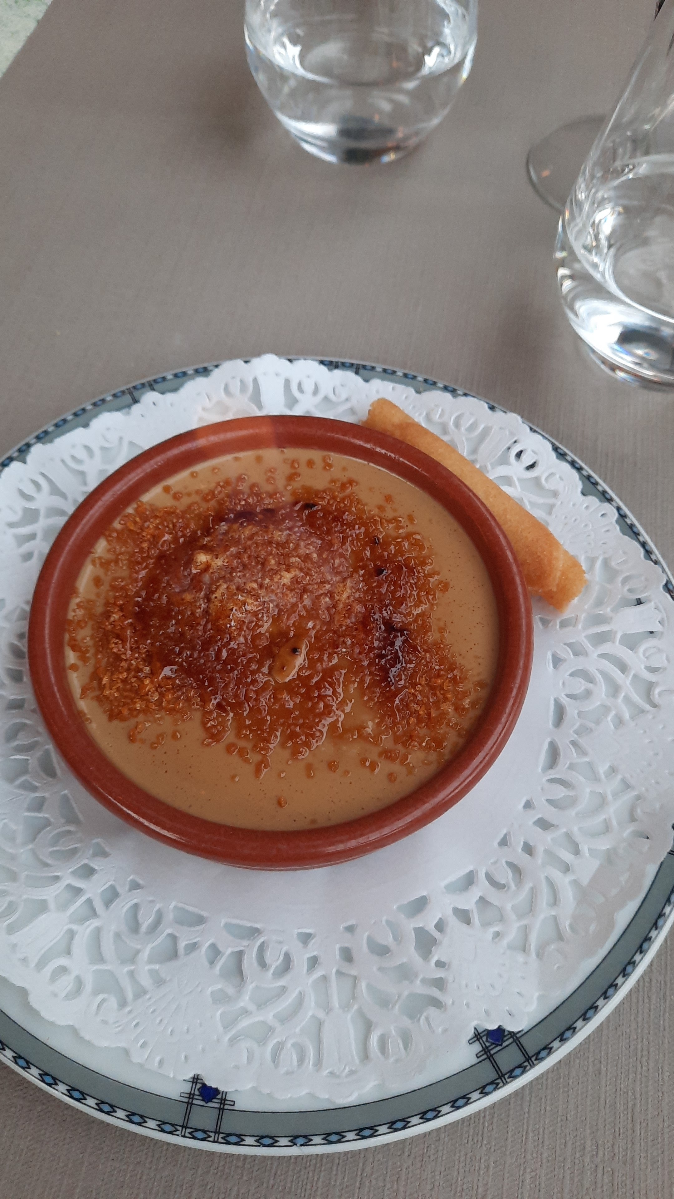 Restaurant très agréable, situé en pleine nature avec vue sur la Moselle. On entend les oiseaux : un cadre parfait. Salle de restaurant chaleureuse, mais beau temps oblige, nous avons dîné sur la terrasse, fort bien agencée et décorée. Les tables sont espacées, ce qui est toujours un plus. Le service est efficace et professionnel, le sourire présent. Pour l'apéritif, nous avons pris la planche apéritive de la mer, copieuse et variée (friture de poisson excellente) à 12€ pour 4 : prix très doux. Nous avons poursuivi avec la pièce de bœuf du moment (très beau morceau, tendre, cuisson parfaite) et la bollotine de sole aux girolles. Accompagnements variés et très bons. Les desserts n'ont pas démérité, notamment la crème brûlée au café (voir photo). Un très bon repas dans une ambiance agréable : la terrasse éclairée à la nuit tombée, magnifique. Je recommande .