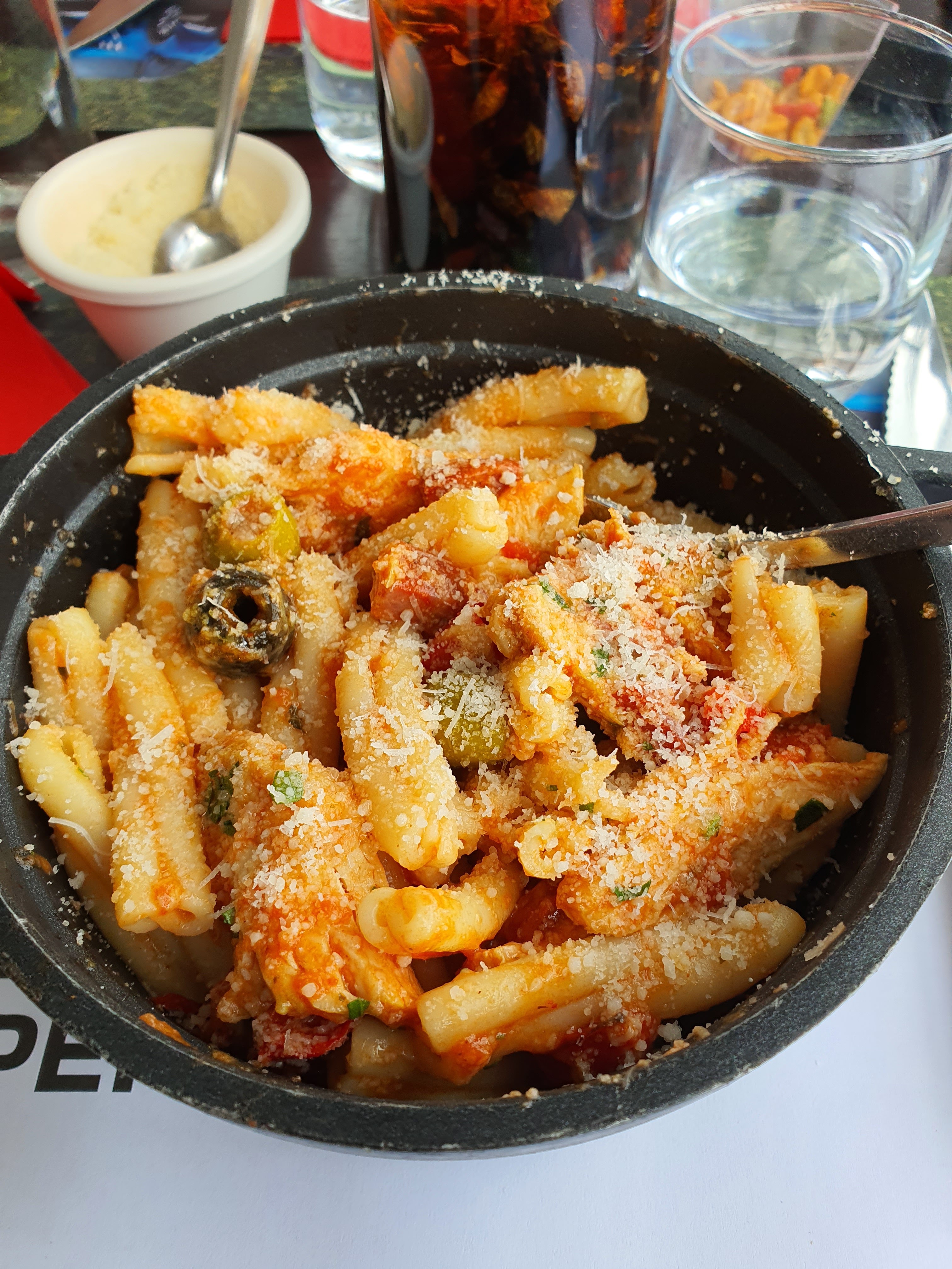 Alors petit resto sympas niveau deco et ambiance par contre il ne faut pas etre presse si vous n avez pas reserve car ils passent les tables reservees en priorite cela vous fait attendre facile 40 min entre votre apero et le plat . De plus notre fille a eu son plat a peine son coktail fini et du coup nous l avons regarder manger . Niveau plat rien de transcendant les pates pas assaisonnees et les pizza pas tres garnies