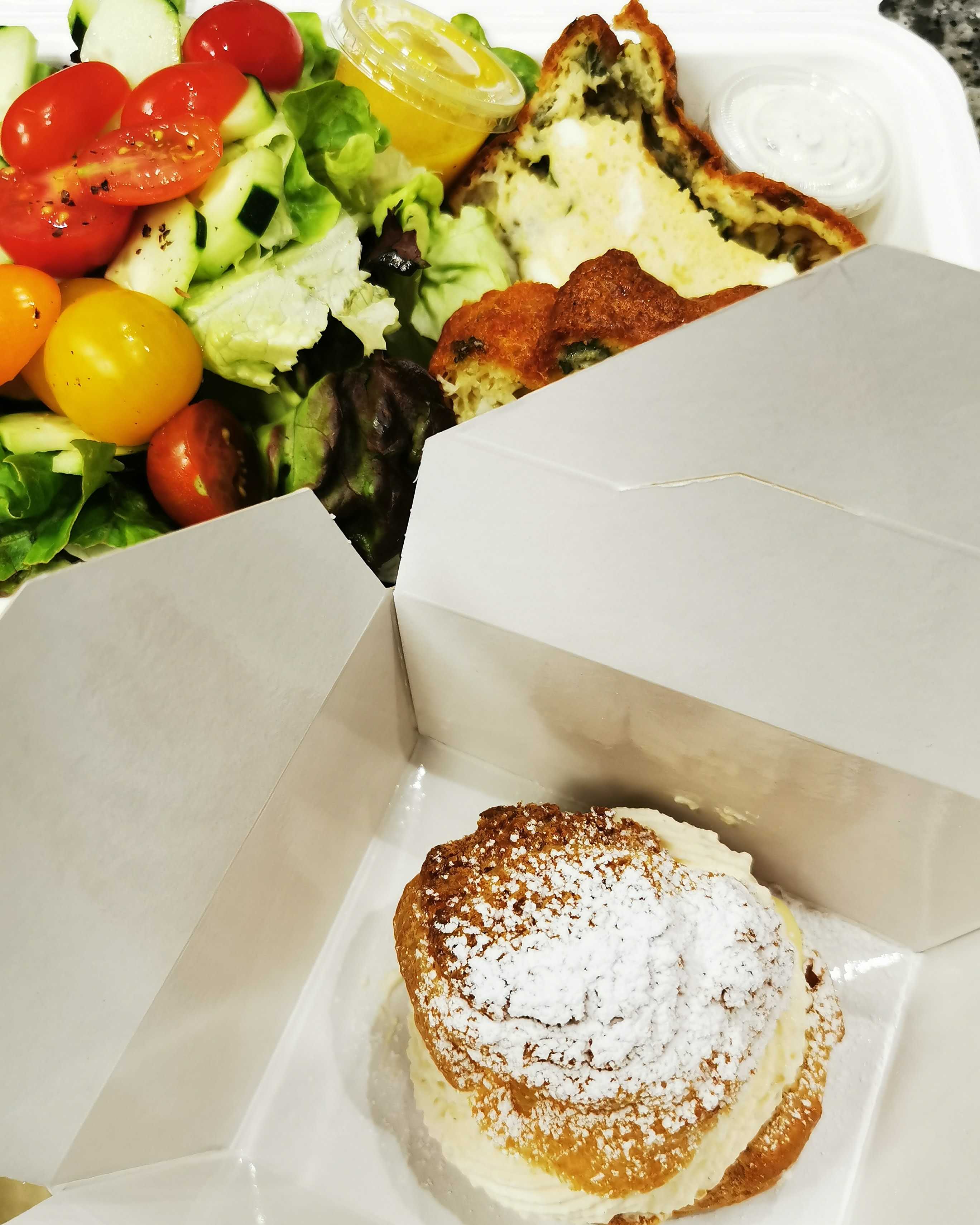 La qualité des plats, pâtisseries, salon de thé, le tout soupoudré de l humeur joviale des 2 propriétaires. C'est toujours avec plaisir que je franchis la porte de l établissement. Vente en emporter disponible
