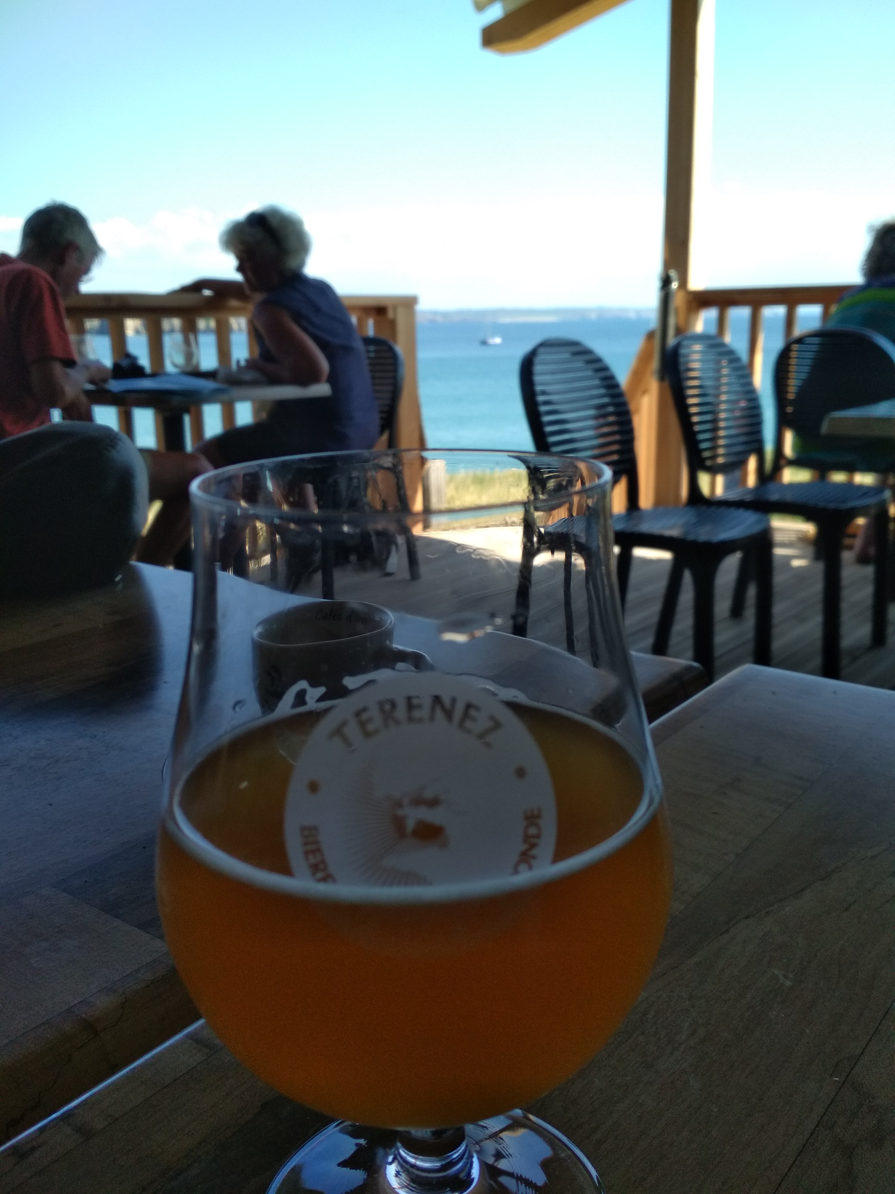 Un terrasse avec une vue magnifique. Beaucoup de monde ce jour là mais le serveur au top, il gère comme un chef l affluence. Bien évidemment il a eu un peu d attente. Le kir celte : j ai adoré. Des crêpes simples mais goûteuse.