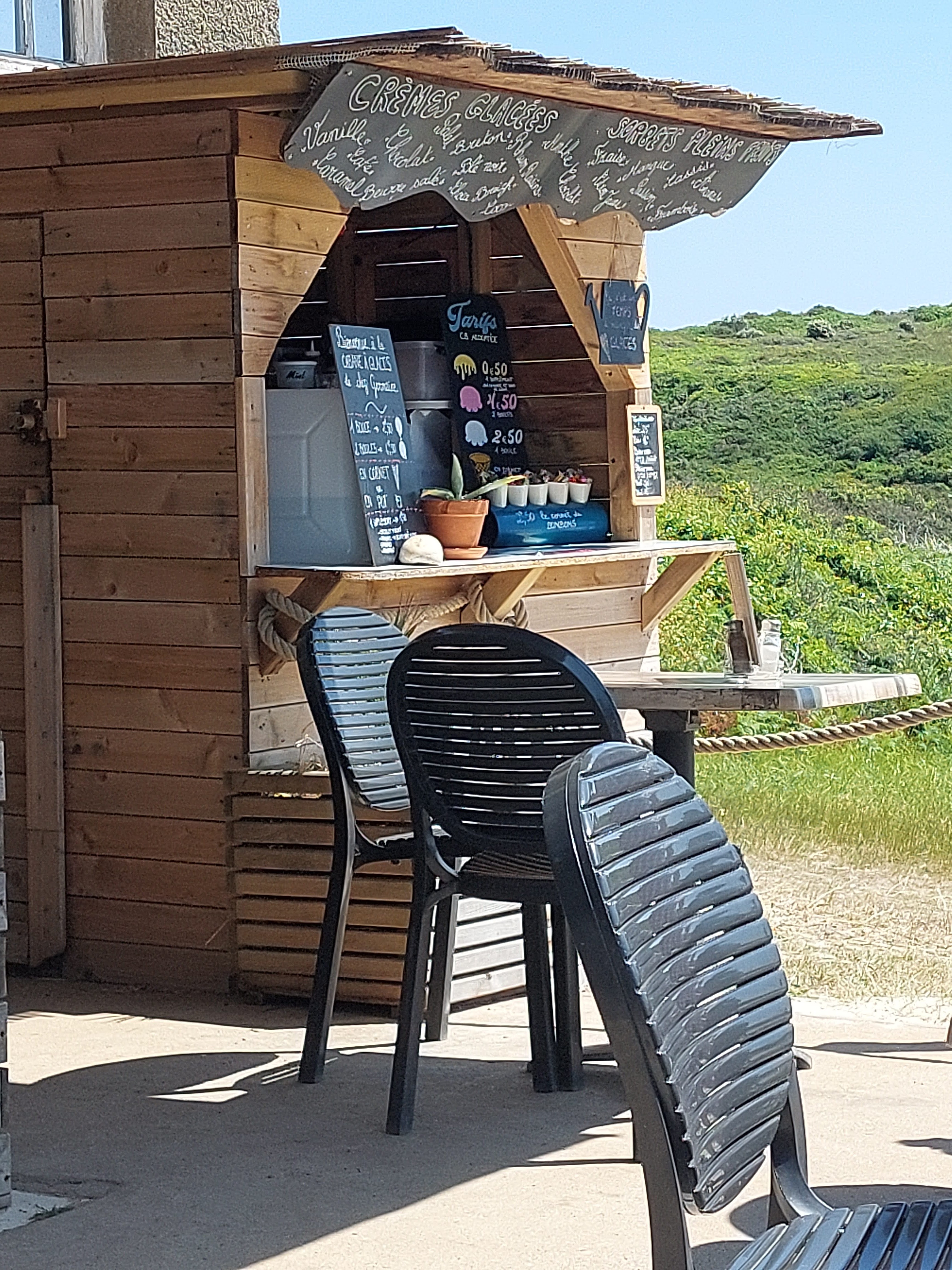 Un endroit cool comme on aime. Le personnel est sympathique et les crêpes sont très bien. Vue extraordinaire sur la mer. Petite balade possible juste à proximité. Il faut juste le beau temps...