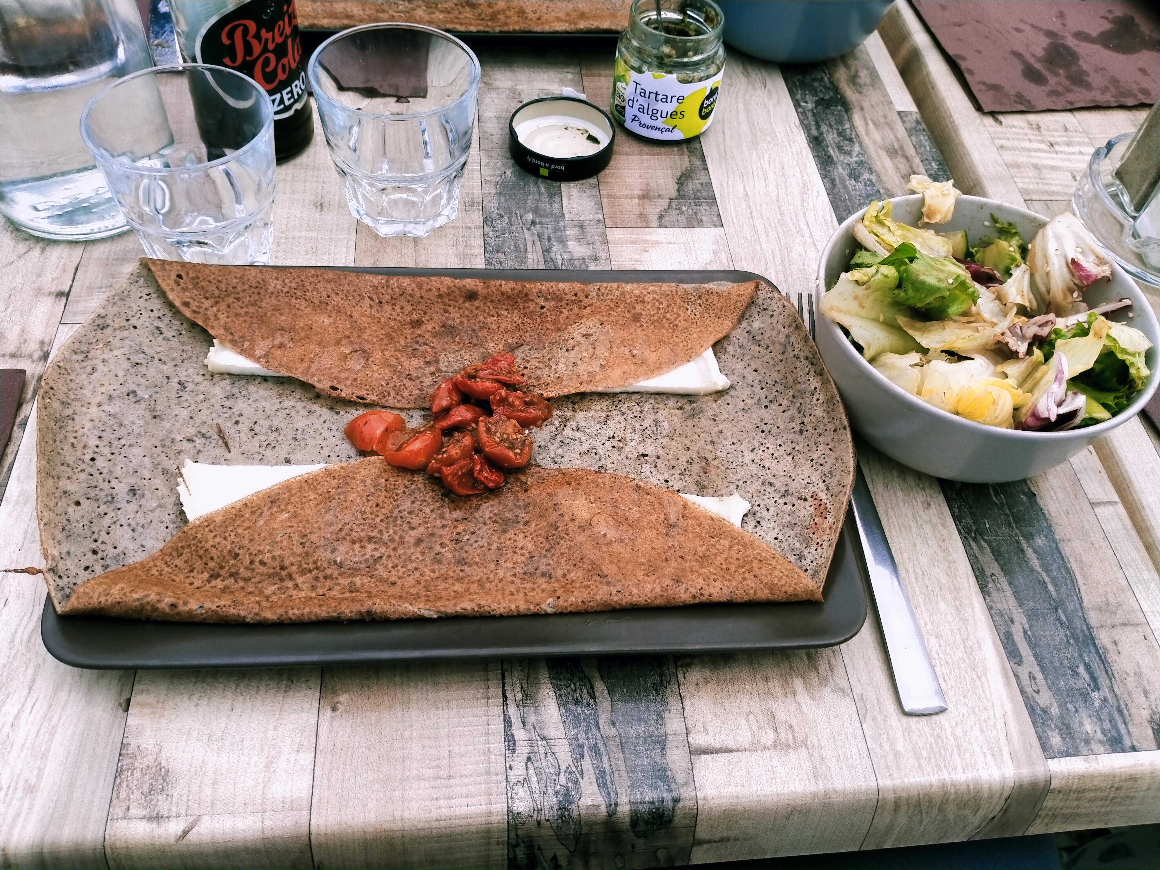 Lieu incontournable de la presqu'île, c'était à ce qui paraît un must do et lieu de passage obligé. La carte de la crêperie est limitée et au global avec des crêpes peu garnies. Le cadre est idéal cela dit et le service, une fois assis drôle et impeccable. En effet, on est arrivé en plein rush de 13h30 certes, mais on doit se débrouiller pour s'installer, avec les crocs. Une institution de fait très/trop touristique de masse...