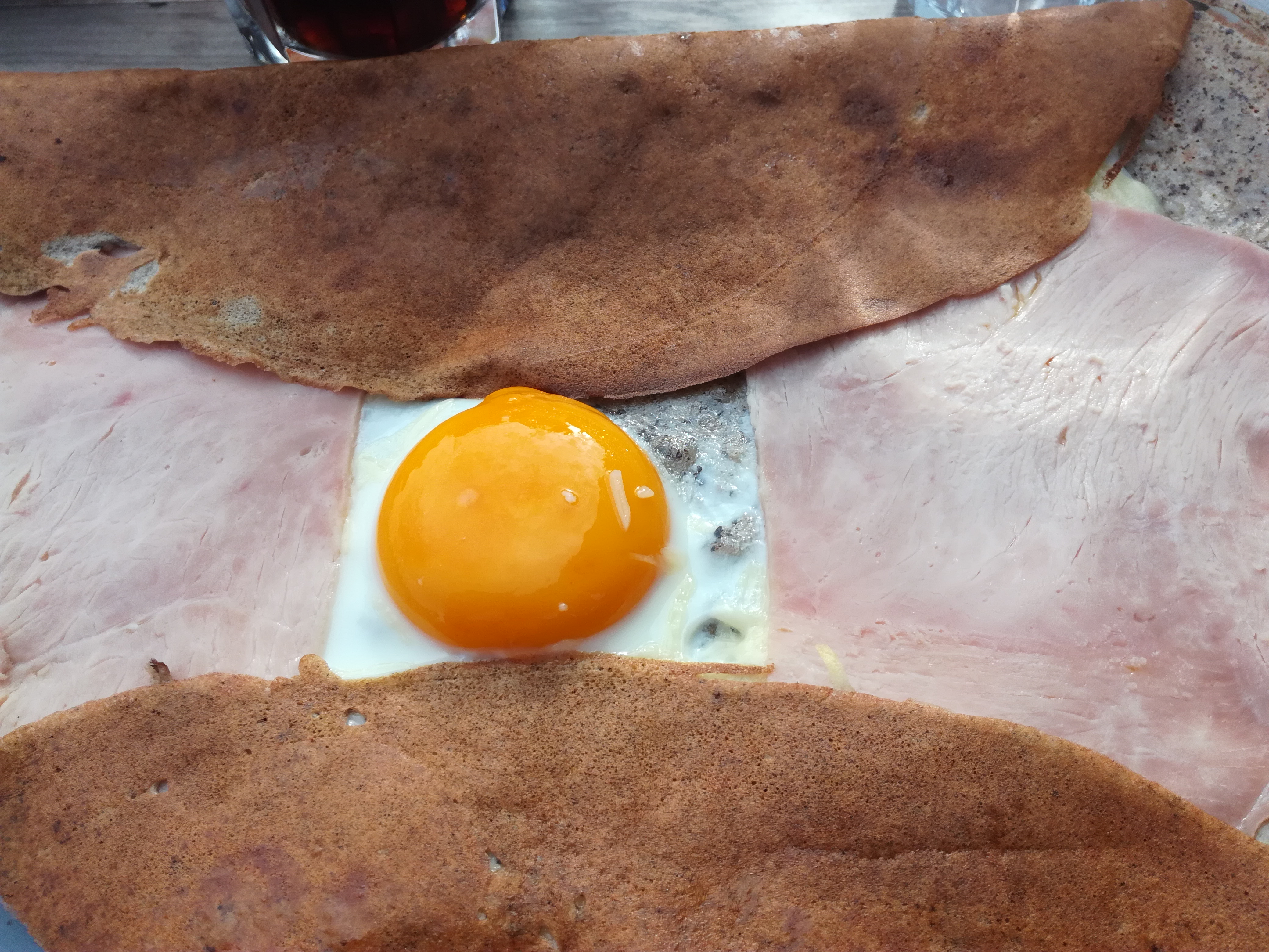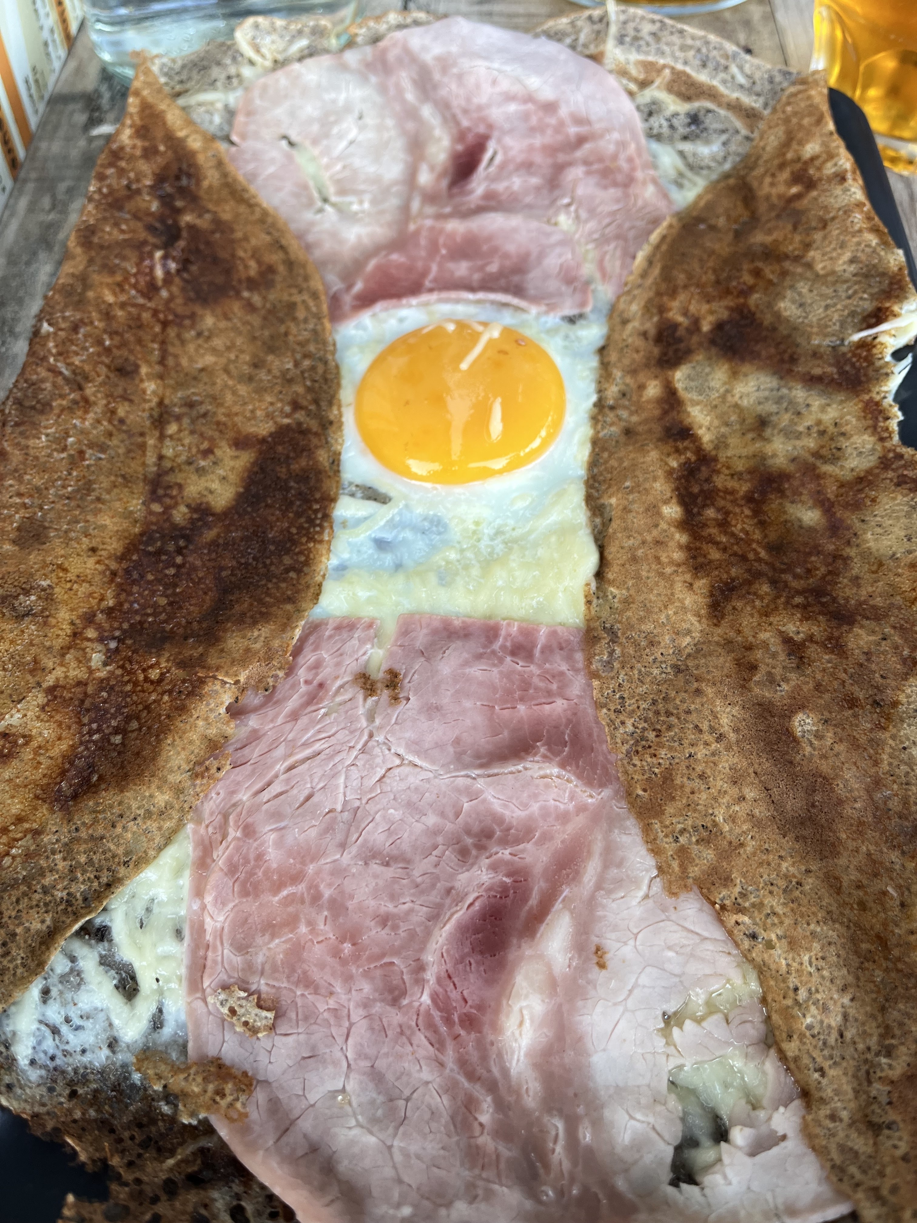 Endroit sympa, crêpes un peu basiques. La mienne 1 oeuf, du fromage râpé et 2 tranches l'andouille. C'est bon mais ça ne casse pas trois pattes à un canard!!! De plus, service speed, stressant et vraiment trooooooooooooooooooooop long. Prévoyez des sujets de conversation entre la commande et l'arrivée des crêpes car c'est vraiment interminable