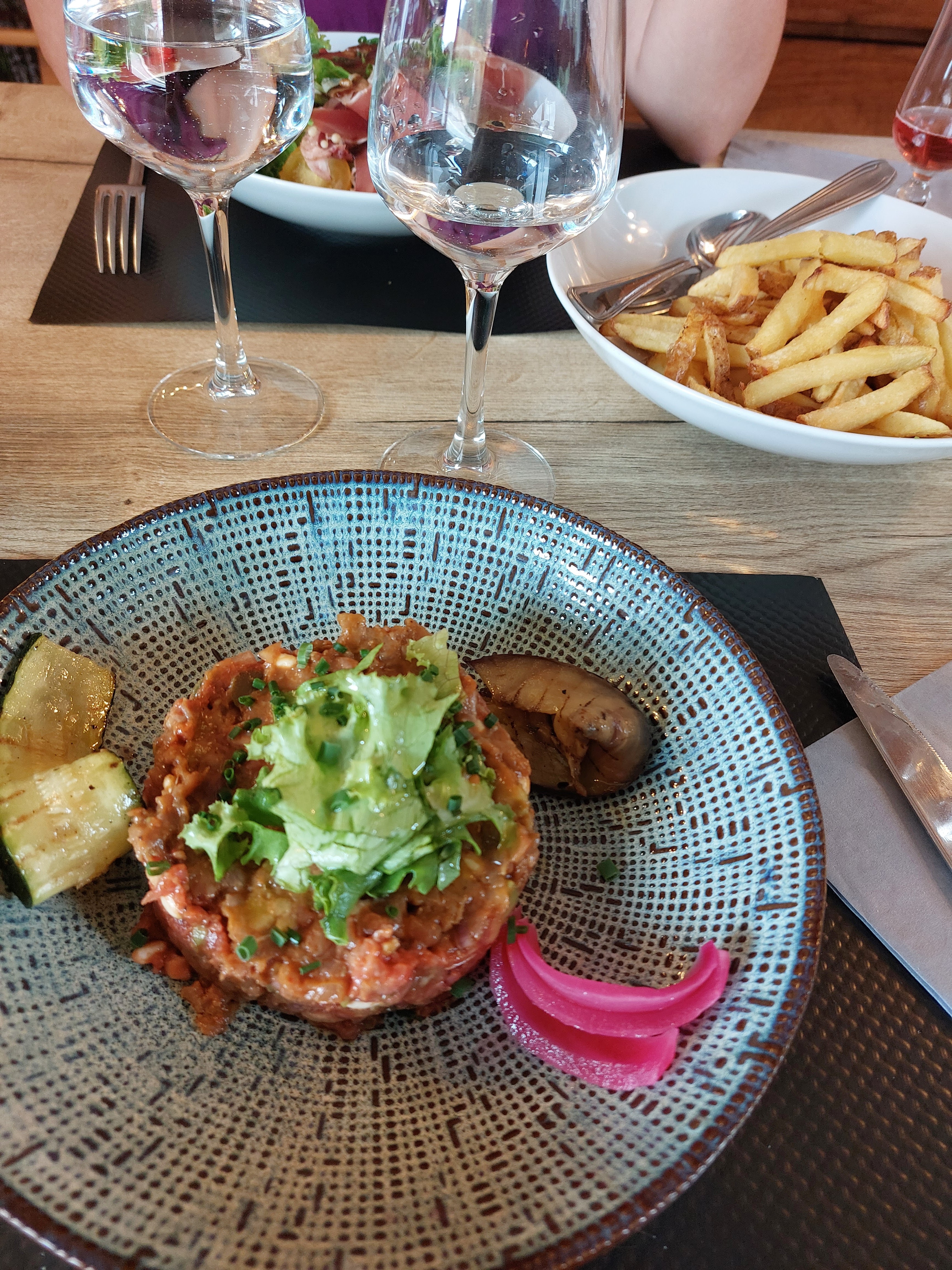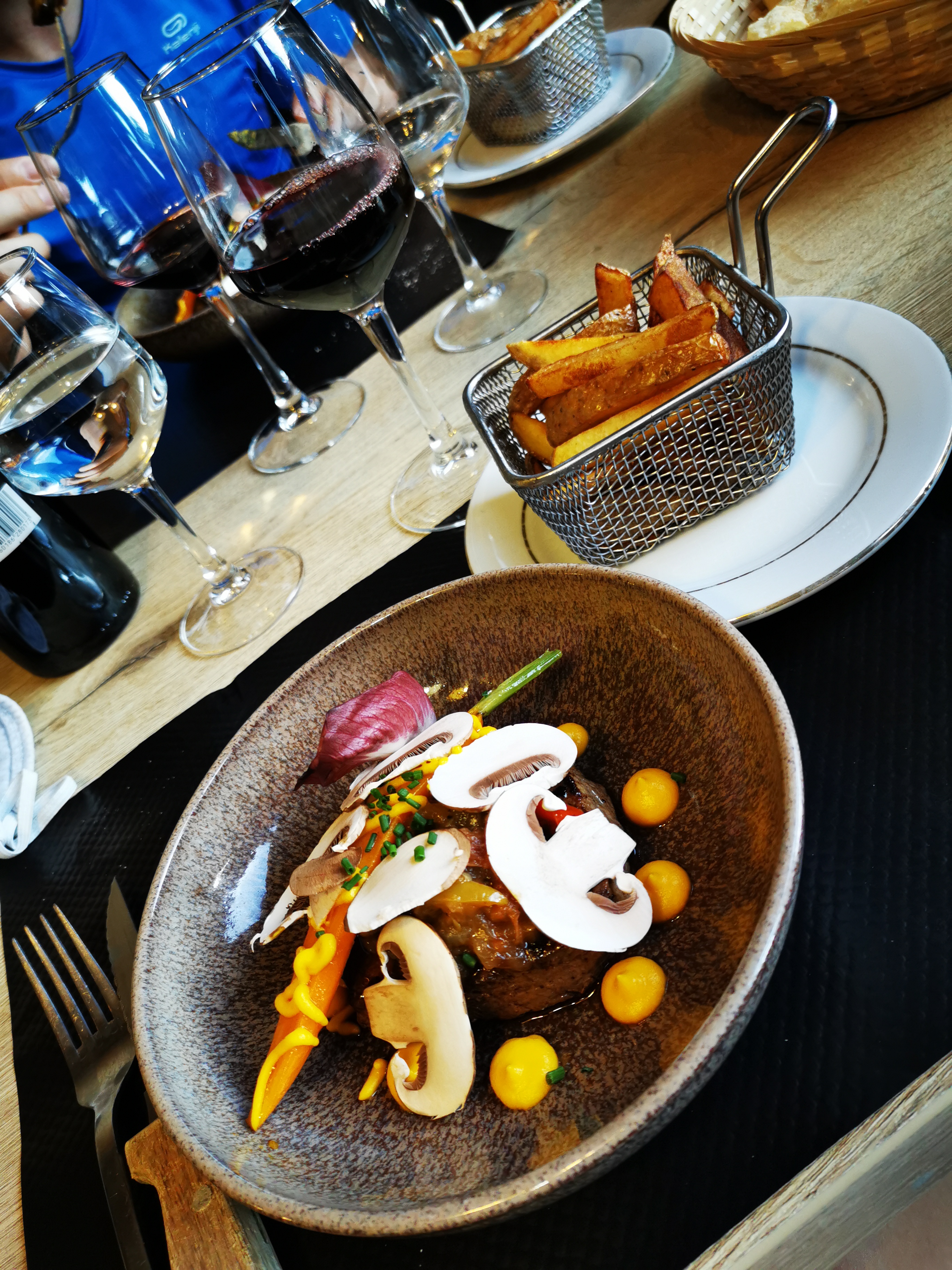 Cadre sympathique et joliment décoré. Accueil et service impeccable. Le menu est très accessible : 25€ entrée + plat + dessert. Présentation très soignée et le tout était franchement délicieux ! La viande tendre, les frites maisons, les mélanges de goûts originaux. Je recommande à 100% 😊