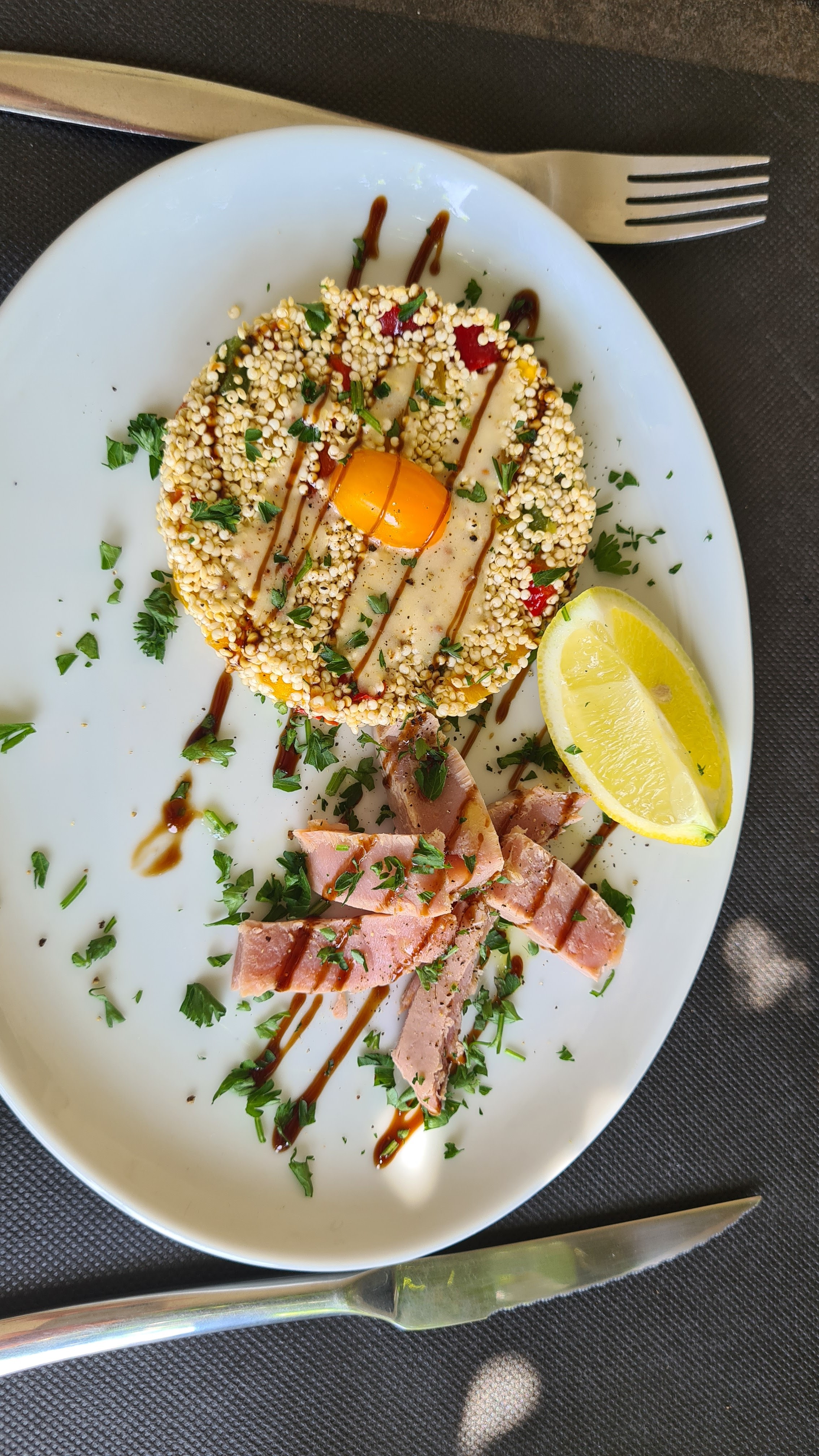 Je suis venue plusieurs fois, la cuisine est bonne, l'endroit sympa. Attention à l'intitulé des plats, cela fait 2 fois que j'ai le même problème dans ce restaurant, un mi-cuit est un poisson frais (ou décongelé), d'une épaisseur suffisante pour être saisi rapidement jusqu'à ce que l'extérieur soit cuit et l'intérieur cru. Donc, on ne sert pas un poisson déjà cuit, mis au frais et servit froid de surcroît. Cela se nomme du poisson cuit en salade. Si il s'agit d'un problème de conservation, ne le proposez pas à la carte. C'est une fausse appellation. Bref, le reste était satisfaisant. Le plat ne m'a pas été facturé, cependant le goût de la déception est tout de même là.