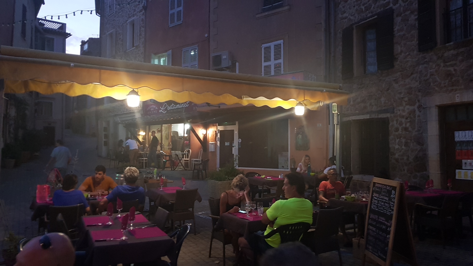 Nous avons déjeuné aujourd'hui dimanche sur la terrasse de l'Estaminet au coeur du joli village provençal de La Motte. L'accueil y est très sympathique et nous nous sommes régalés avec des Gambas flambées au pastis et un steak tartare ! En dessert, une soupe d'orange à la Badiane a permis de finaliser le repas sur une touche de fraîcheur délicieusement épicée ! C'est sûr, on y retournera !!!