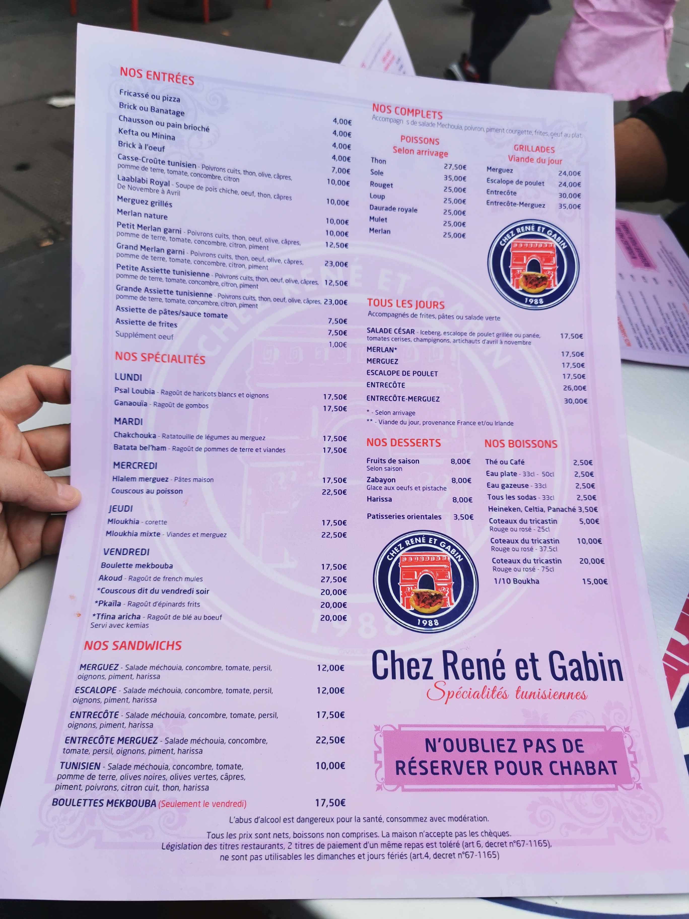 Ce restaurant est incontournable pour tout tunisien qui se respecte. Il représente pour moi une histoire familiale et des souvenirs incroyables avec mes parents pour les kiffs du dimanche en allant voir ma sœur qui est à un foyer pas loin de là. La cuisine est toujours aussi bonne, l’accueil et l’ambiance toujours là. En revanche les prix sont, comment dire sans froisser, exorbitants et en constante progression. Le complet sole a 50€ c’est pas possible s’était le chiffre qu’on trouvait cher lorsqu’on était encore en franc 😅. Vraiment il faut faire quelque chose. Longue vie à « chez rene et Gabin » tout de même ♥️. Ps le meilleur plat reste la Mlokhia
