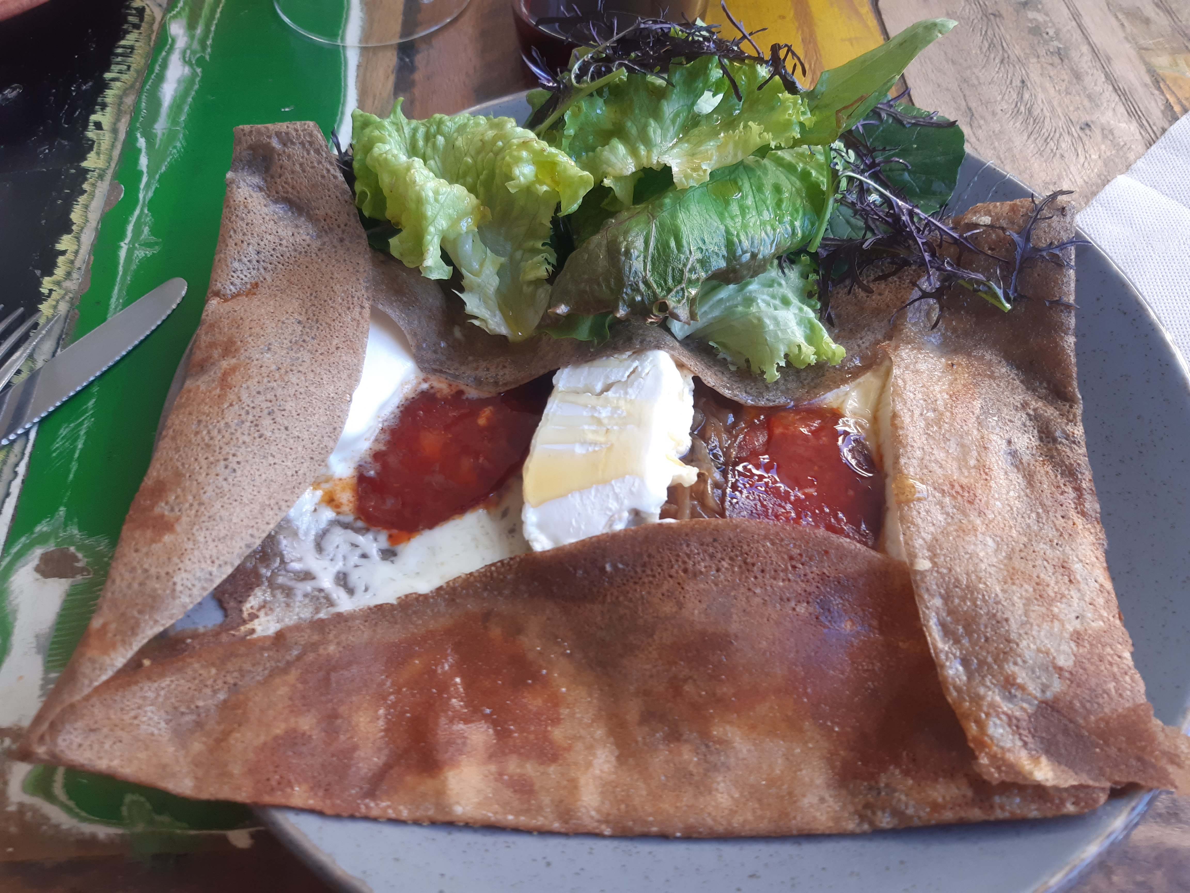 Bonjour, aujourd'hui nous nous sommes régalés avec la crêpe au fromage. Plus faim pour le dessert 😒. Très bon accueil. On vous le recommande.