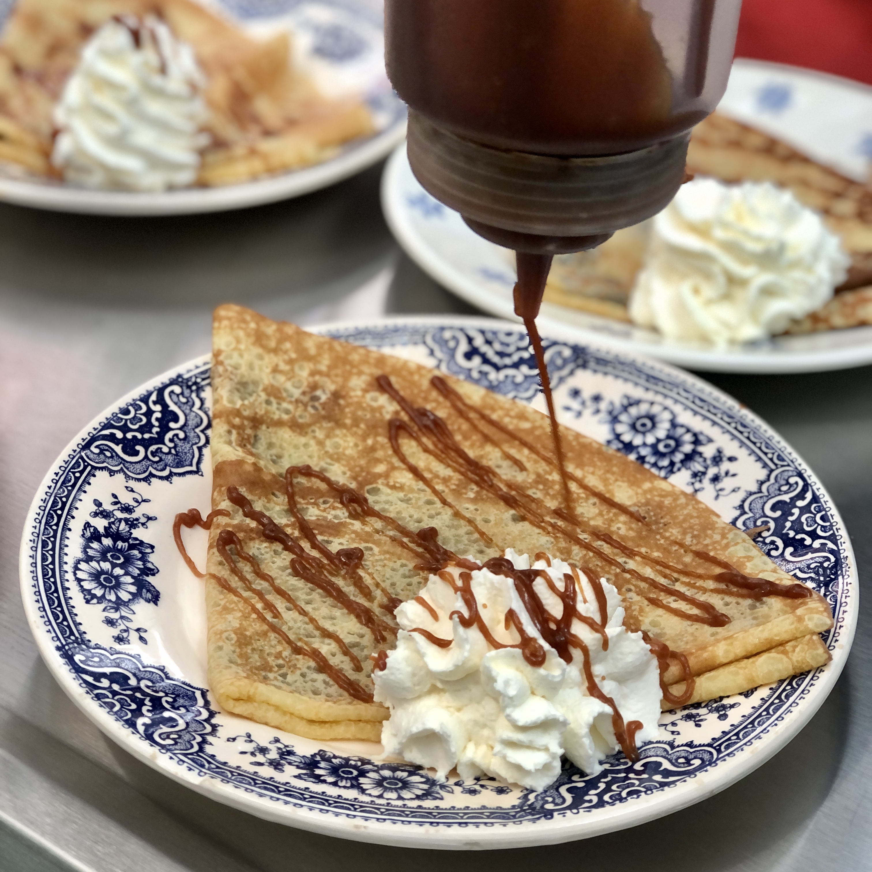 De délicieuses crêpes dans un joli cadre.
