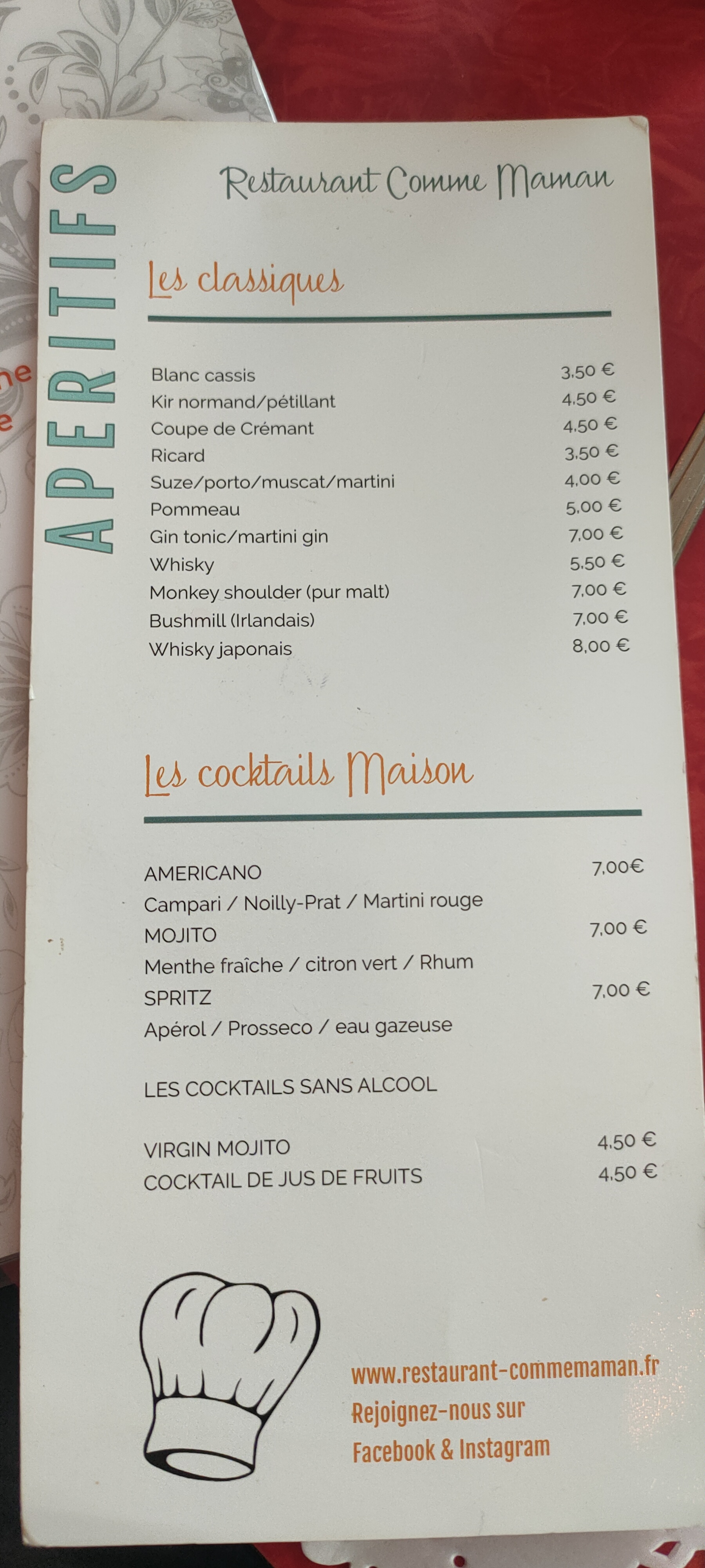 Très bonne qualité de plats comme chez maman en effet !! Une cuisine classique bourgeoise avec des produits frais, de bonnes saveurs, un service aimable et sans chichi. Bref une adresse à garder pour un prix raisonnable !!