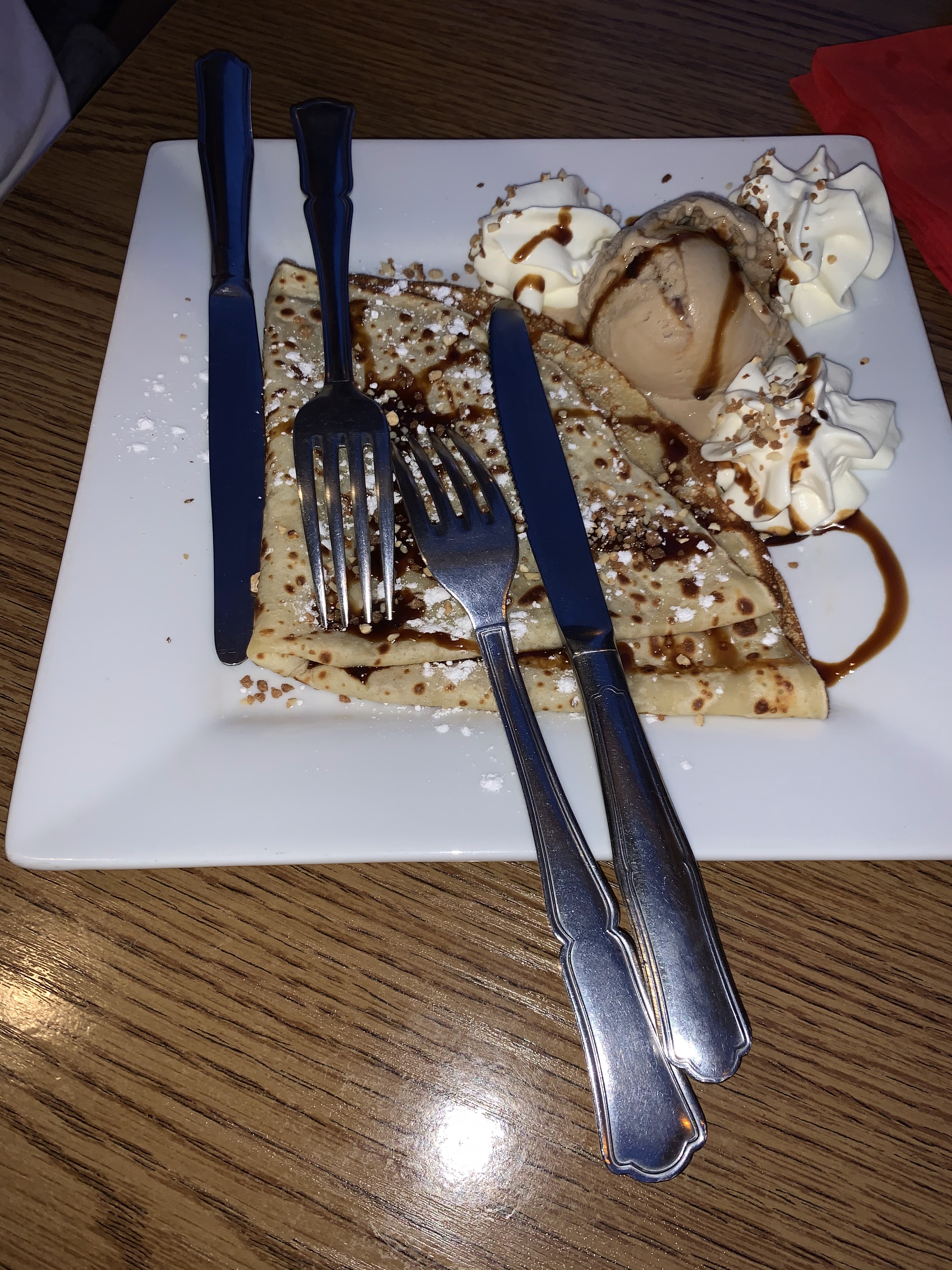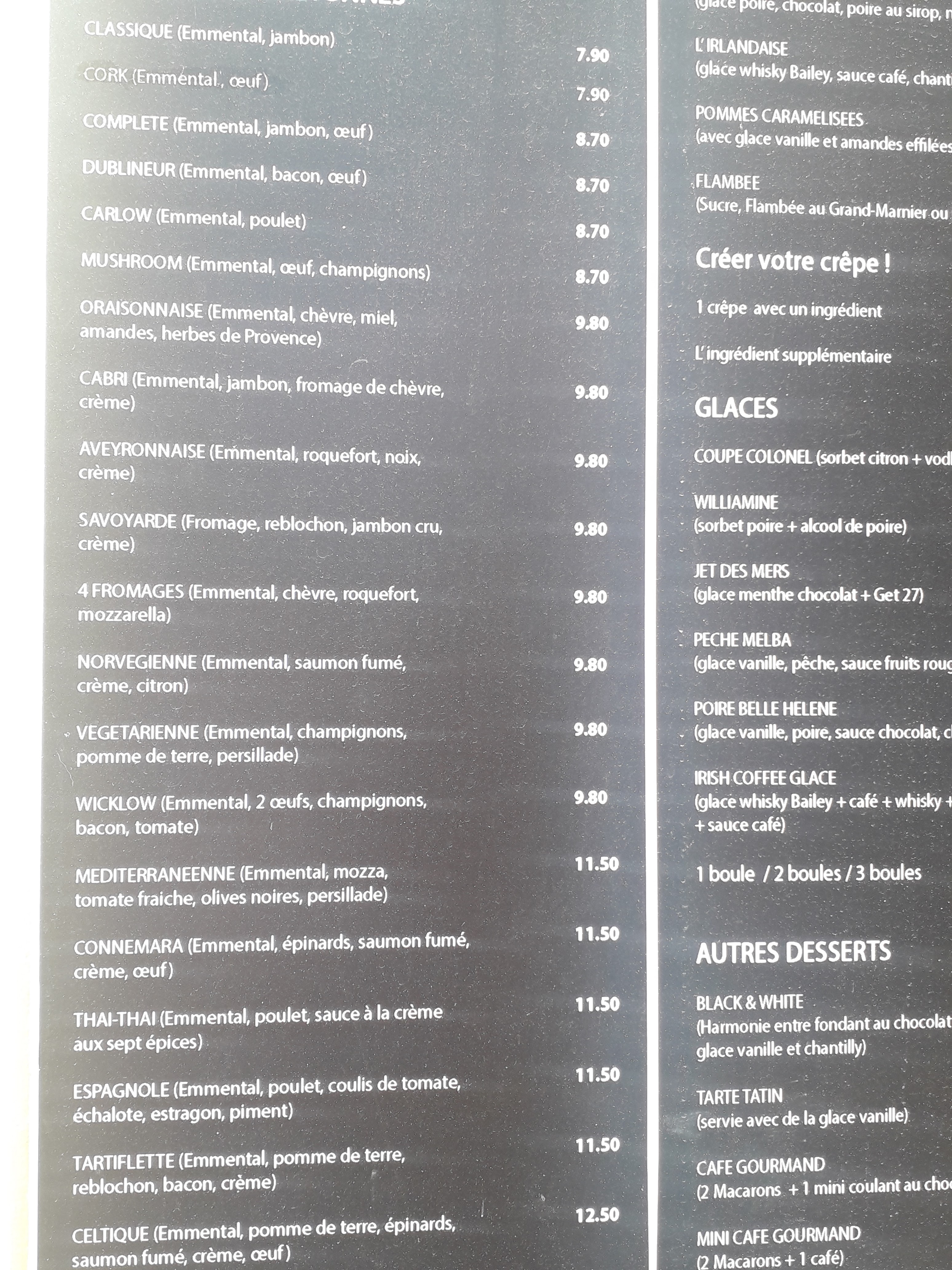 Belle découverte. Simple mais très bon . Tout se que l'on attend d'une crêperie signe de se nom. Seul petit bémol un peu d'attente mais gérée avec gentillesse. Mention spéciale pour l'Irish Coffee glacé une tuerie
