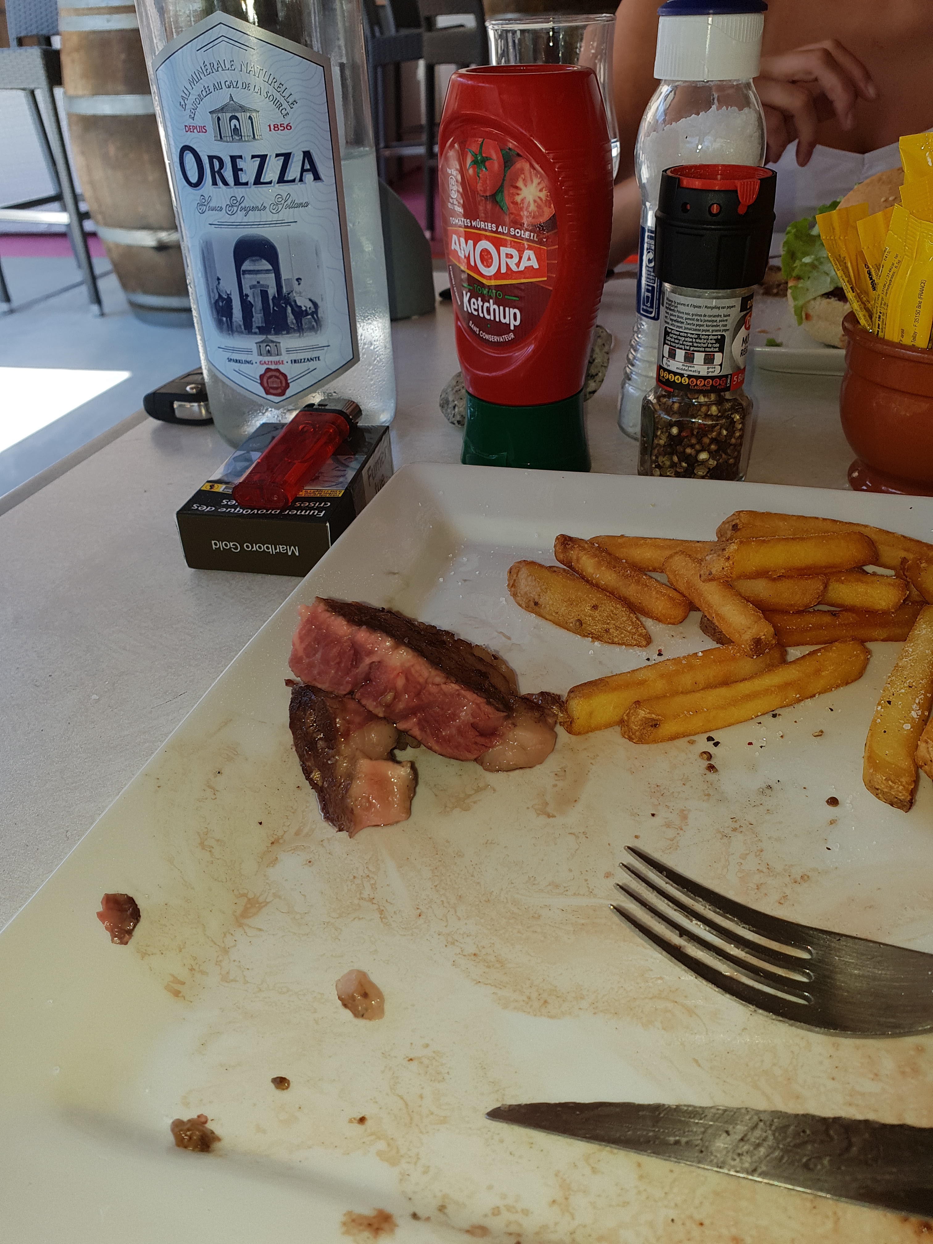 Posté le 19/08/2024 à 12:02" Service rapide, mais personnel pas trop sympathique, restaurant et salles de bain pas bien entretenues et très sales. Couverts disproportionnés par rapport à ce que l'on boit et mange car 5€ par personne c'est vraiment excessif. "