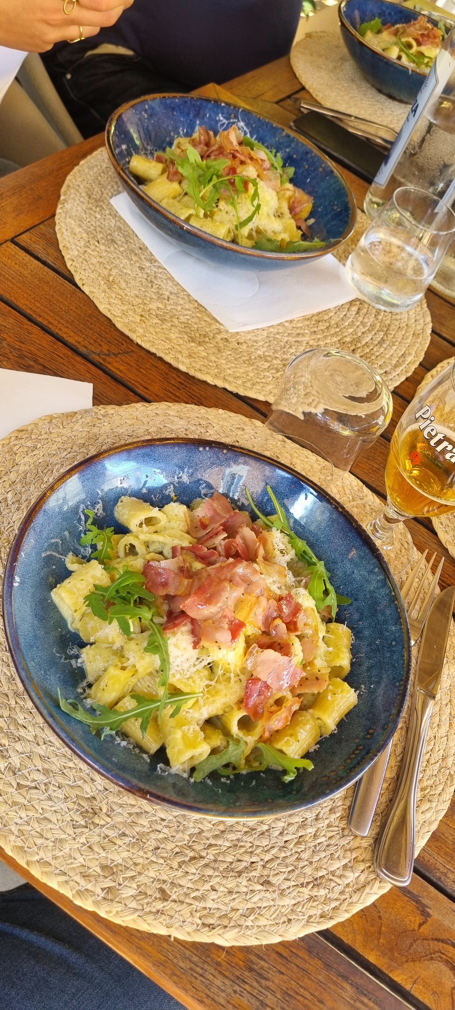 Posté le 20/08/2022 à 09:59" Premièrement, je ne comprends pas les critiques négatives précédentes. J’ai séjourné dans un hôtel voisin où je n’ai pas pu dîner, je suis venu ici deux fois. Les deux dames étaient gentilles, mais nous ne parlions pas la même langue, le premier soir, la jeune femme a demandé à un autre client de m'aider à commander qui parlait anglais, je n'ai pas ressenti de service différent simplement parce que j'étais étranger. Super pizza, bonne bière et délicieux dessert. "