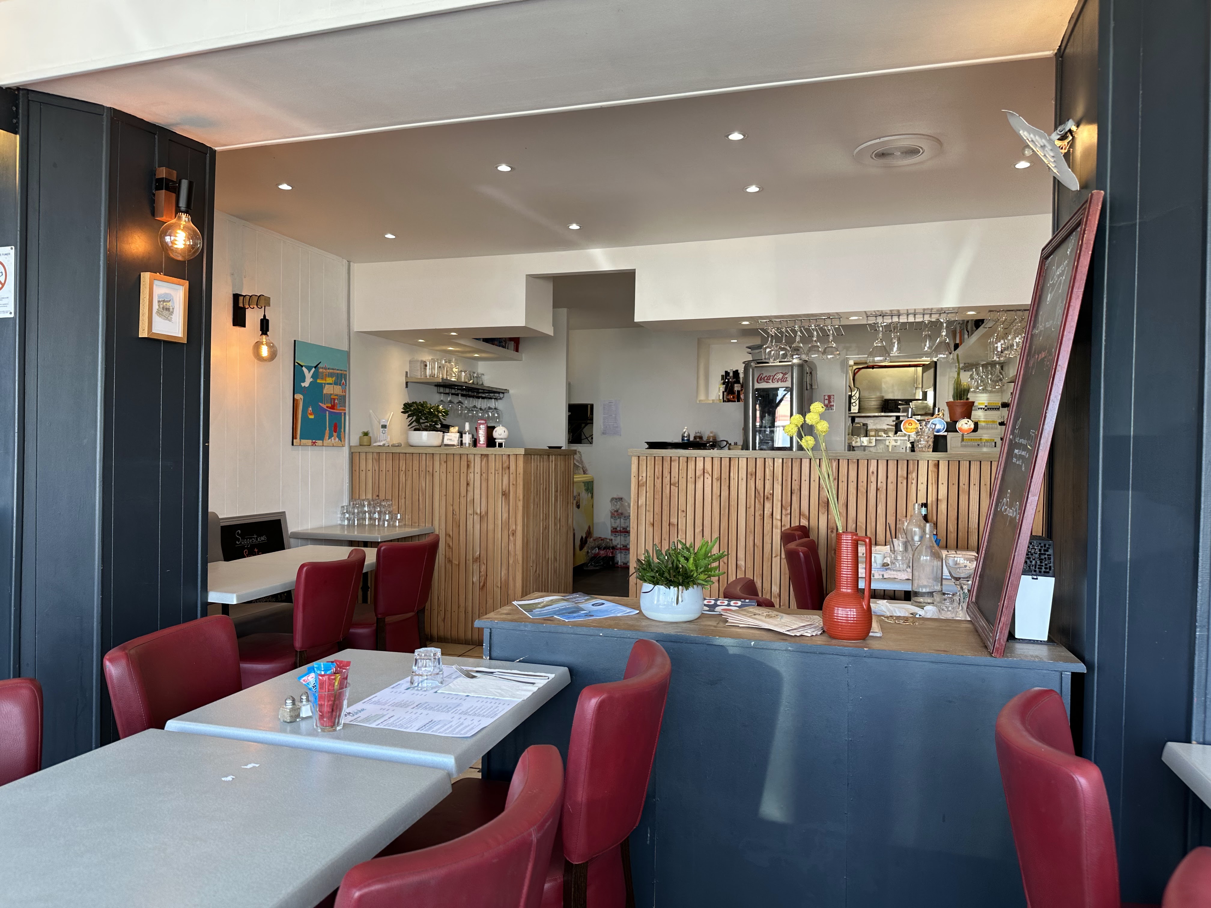 Beau restaurant à l’intérieur plutôt cosy et à la terrasse sur la digue. 🌊 Les plats sont variés et à prix abordables. Les crêpes sont excellentes ! 🥞 Il existe des options végétariens.🌱 Le personnel est top. Je recommande !