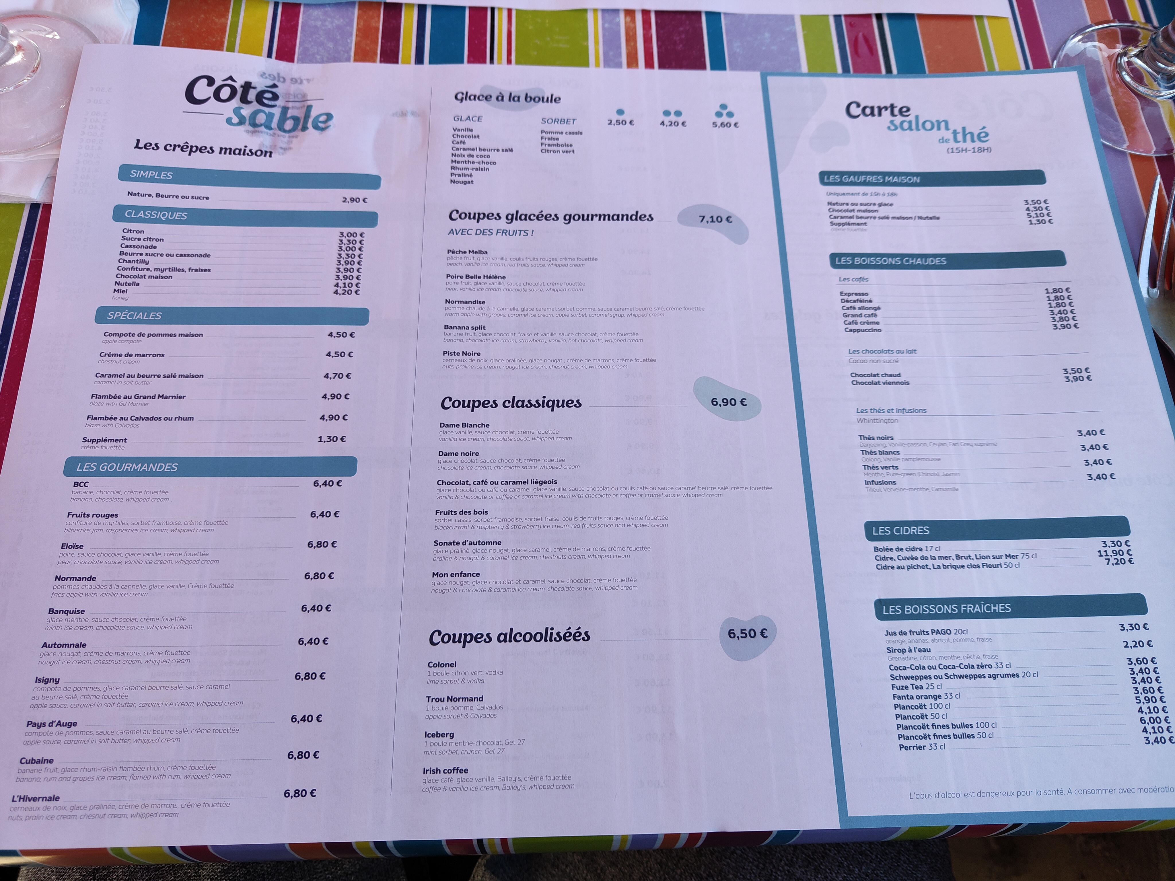 Emplacement idéal avec service extérieur (pas assez isolé du vent) avec vu sur la plage, très bien. Accueil très sympathique et très bon service. Crêpes et gaufres excellentes, chocolat maison et sauce cacahuètes beurre salé au top. Moules fraîches délicieuses. Souris d agneau excellent (un peu gras mais normal), frites bonnes, tarte normande à tombée par terre !!!! 😋 Rapport qualité prix très bon Je recommande vivement. Merci !!!