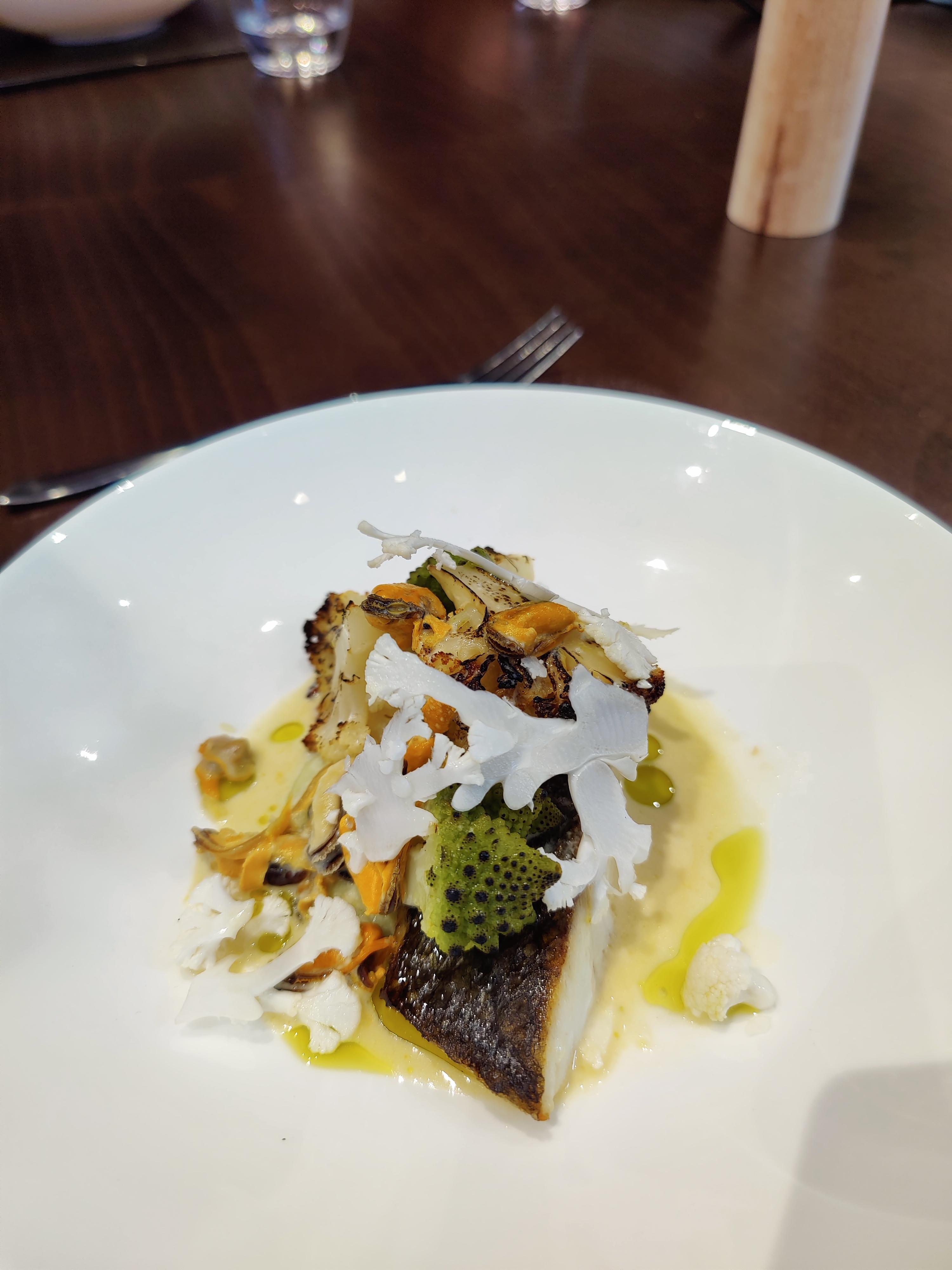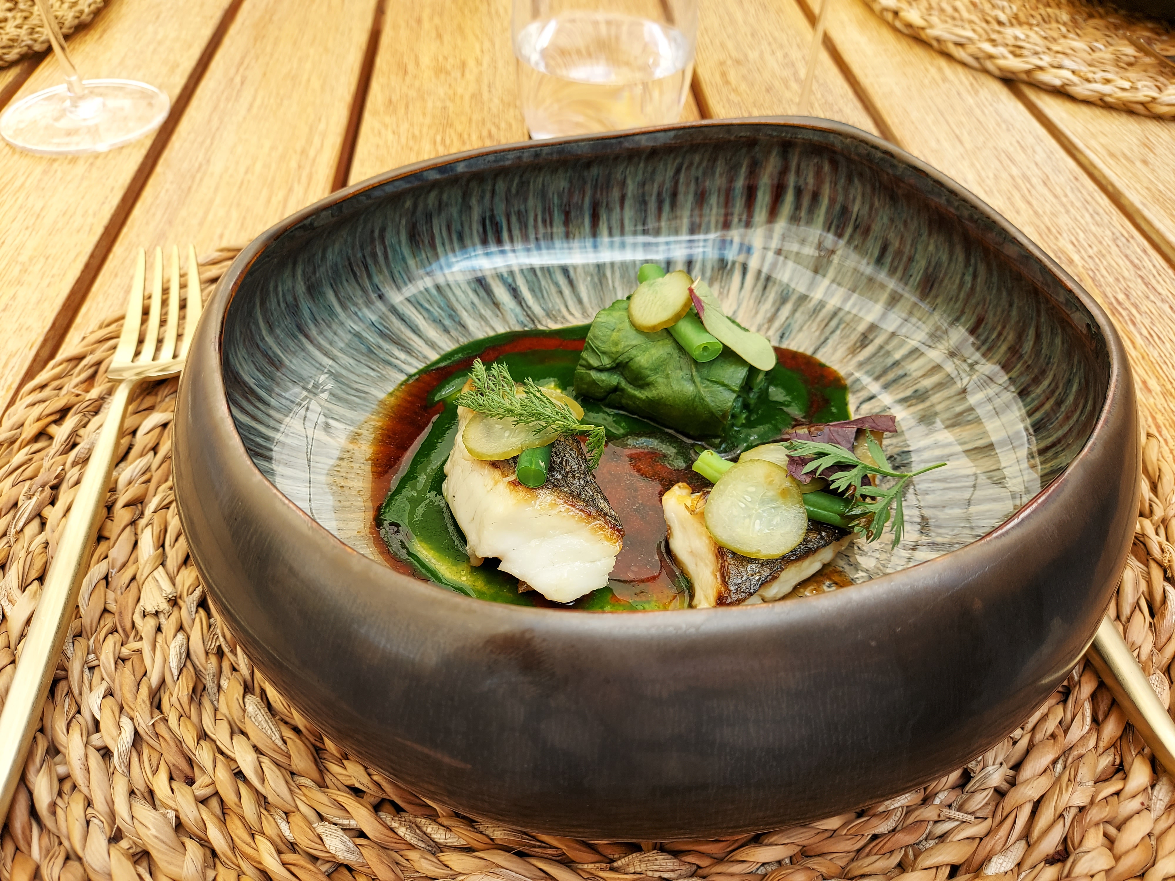 De la belle vaisselle jusqu'aux couverts, le plat arrive et c'est un plaisir pour les yeux avant les papilles. Le service irréprochable, de bons conseils. Belle déco de la salle. On y retournera pour tester la terrasse 😄