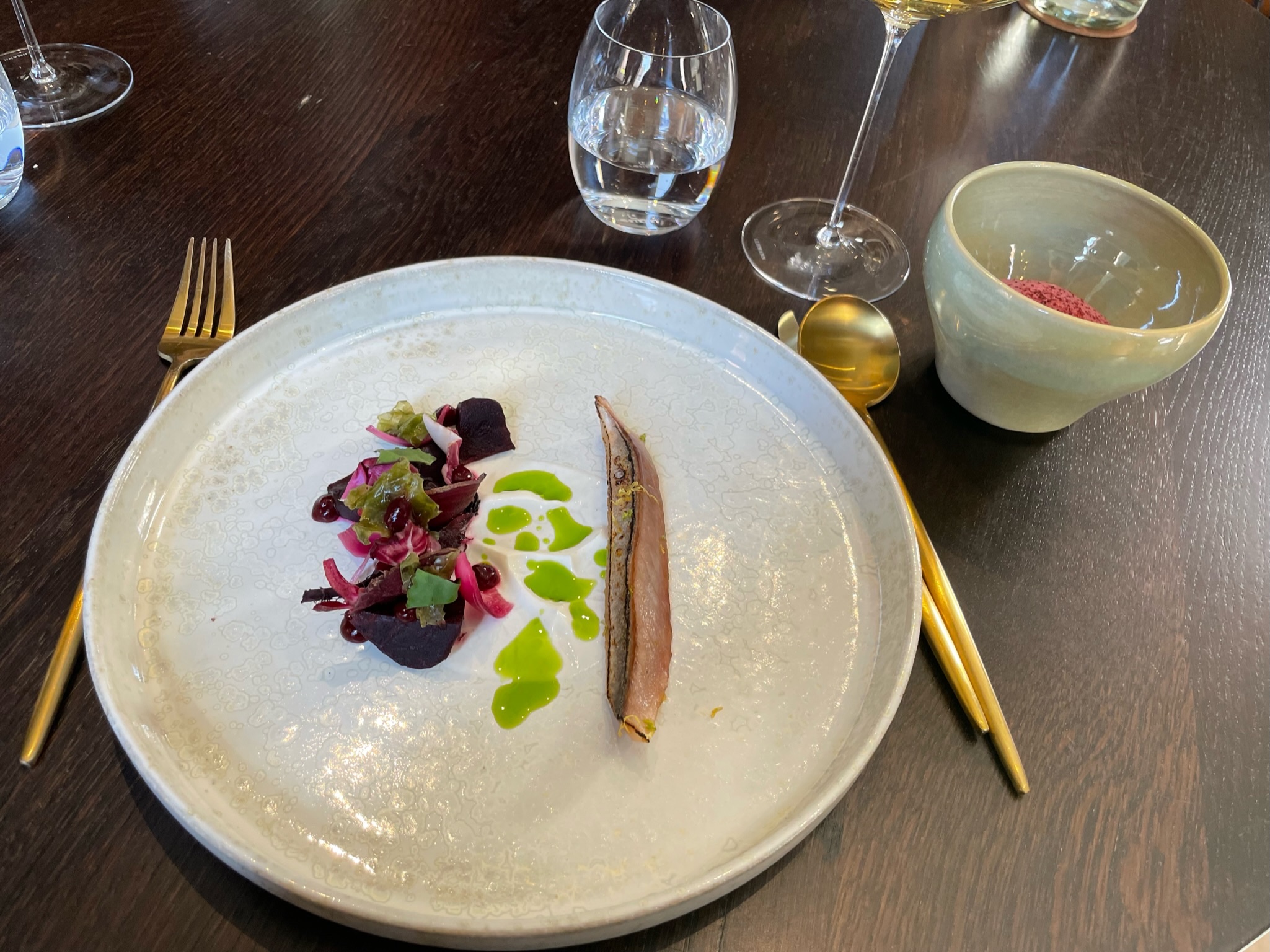 Super bon et équipe fort sympathique. Un resto à la top chef comme on dit avec ma femme : bon, beau et surprenant. Je ne mets qu'une photo pour ne pas tout dévoiler du menu du soir 😉
