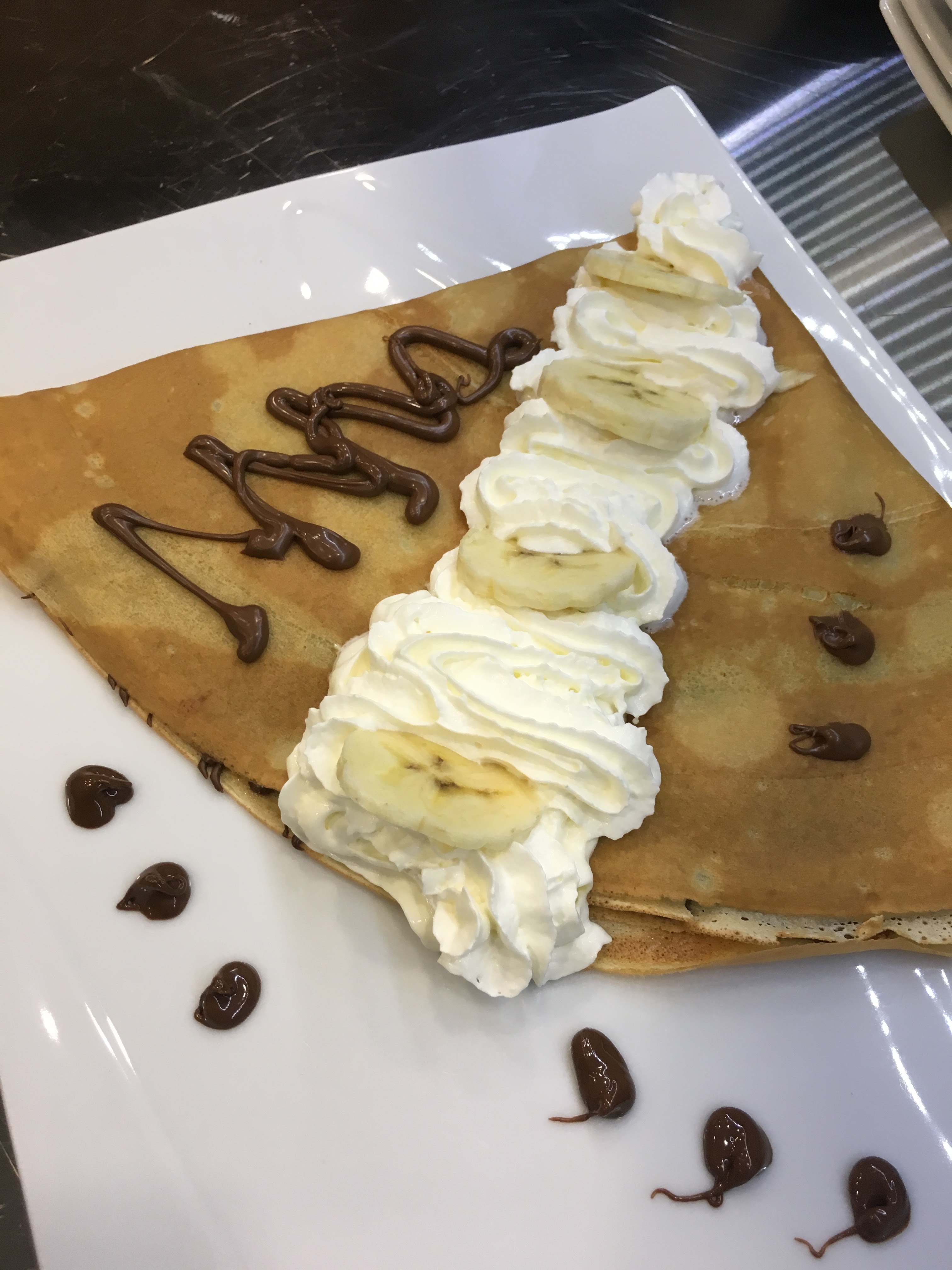 Endroit très propre, personnel très agréable, les crêpes, les milkshake et les smoothies sont délicieux, les crêpes sont servies en assiette ou sur plateau. Les assiettes sont très bien décorées....