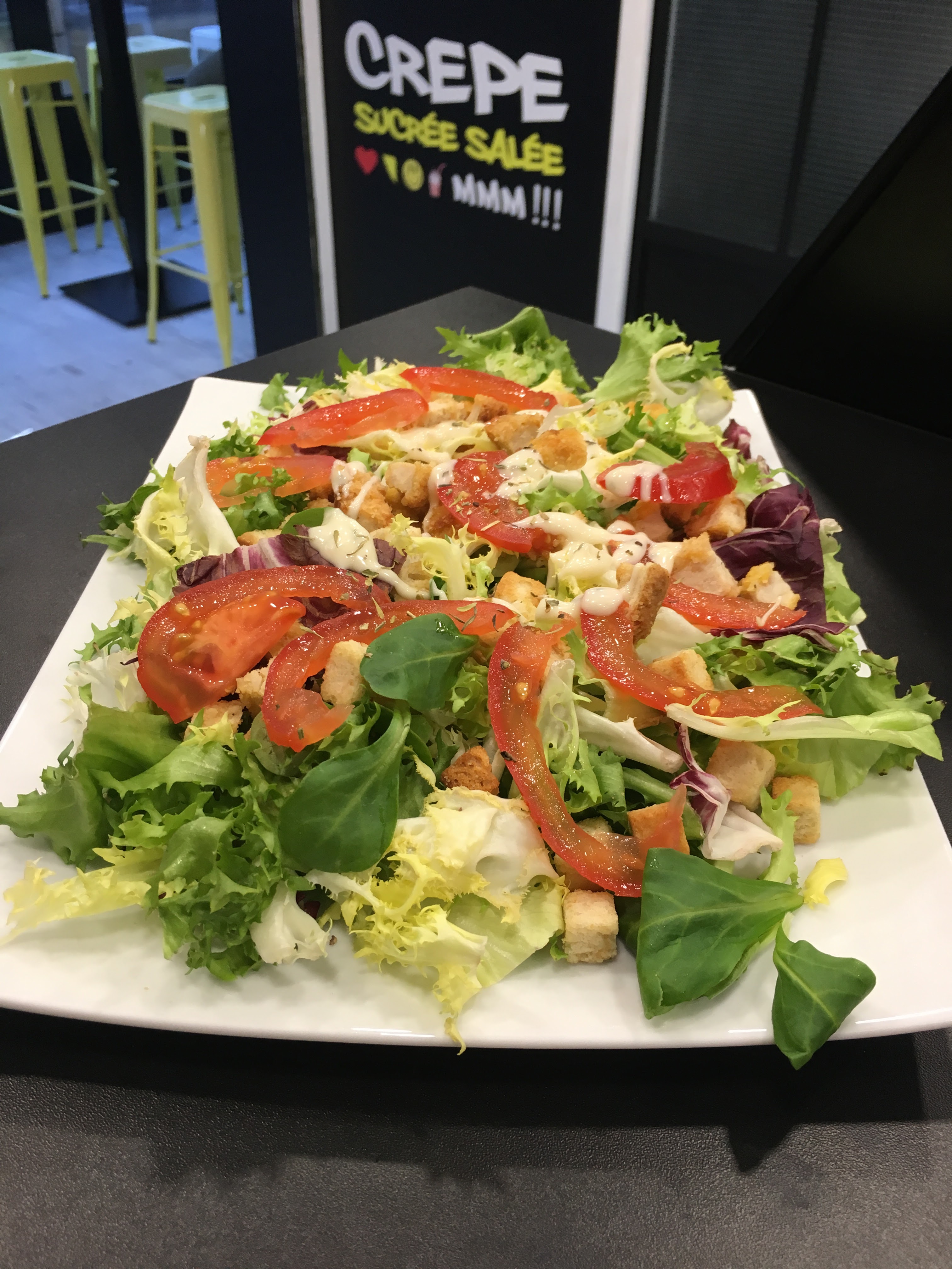 Les crêpes sont bonnes par contre du changement niveau des quantités sur les crêpes dessert ou franchement la quantité a été divisée par 3 pour les salades là c'est la César est juste dégueulasse la salade au chèvre très bien et très cher pour ce que c'est je mets trois étoiles autrefois le niveau était à 4 voir 4 et demi