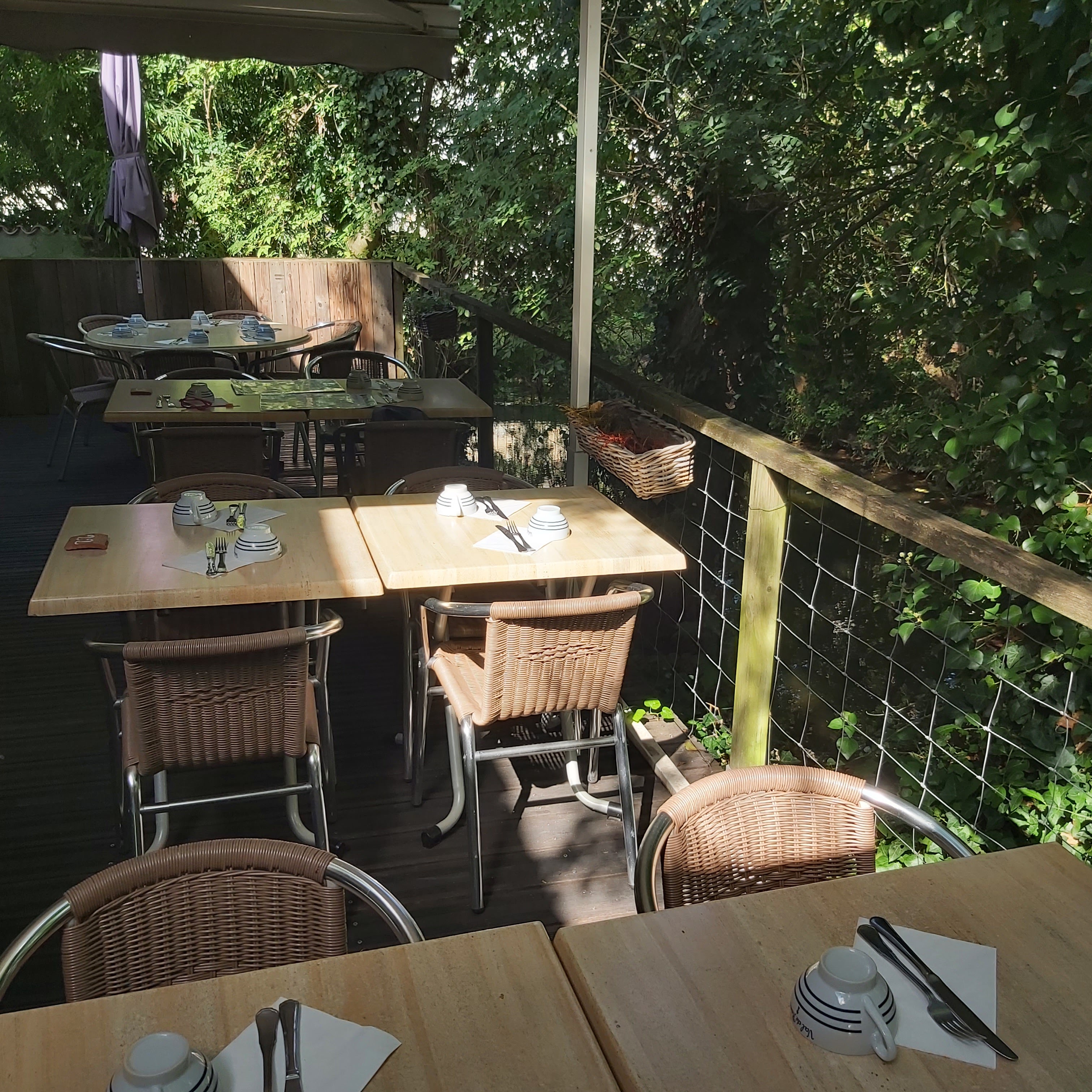 Terrasse ombragée près du cours d'eau. Crêpes bien équilibrées. Service optimisé, quelques attentes lors d'influence. Crêperie à recommander.