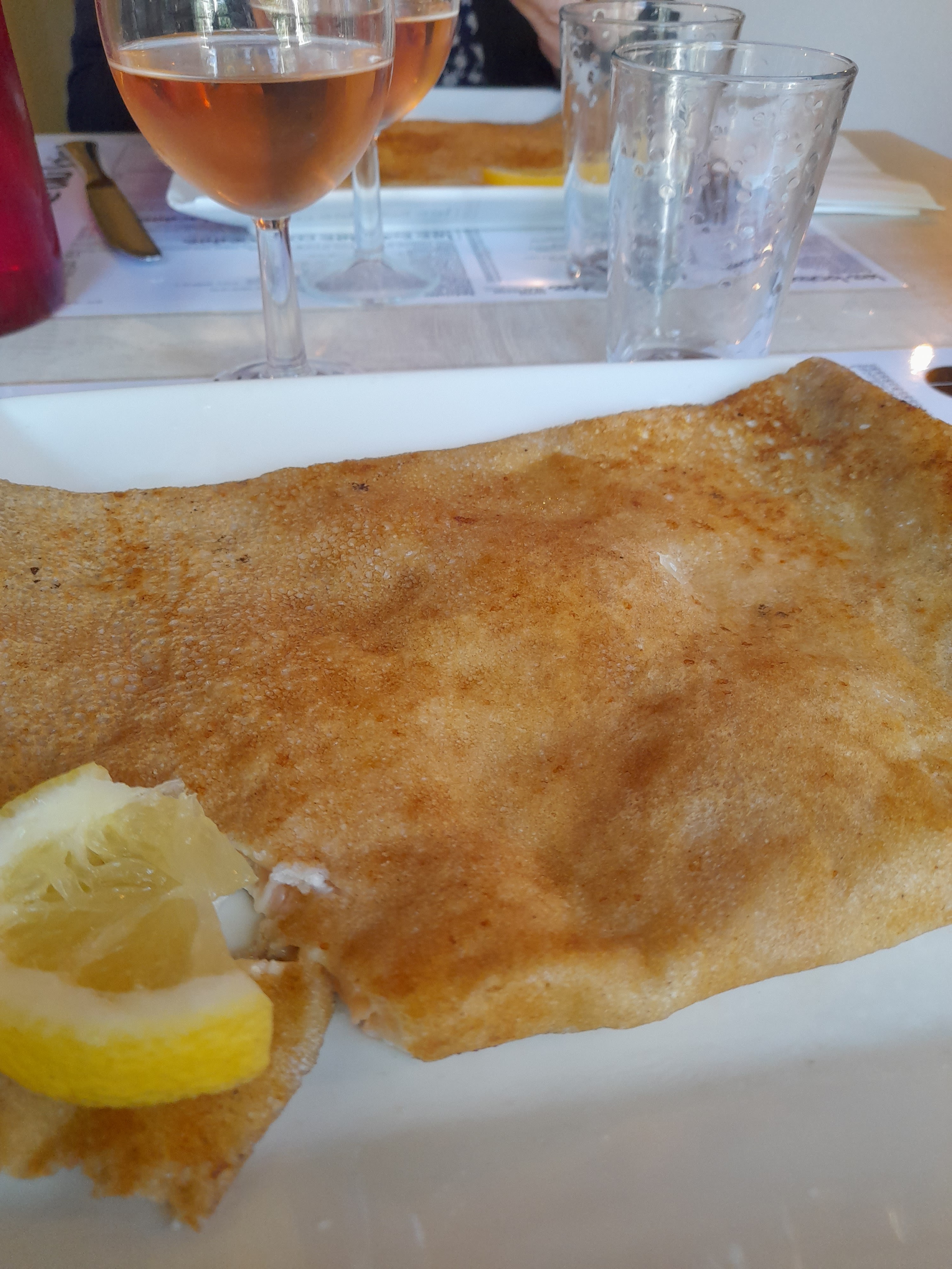 Crêpes assez bonnes (complètes) mais pas tellement garnies. Service un peu lent entre les plats (un serveur). Le cadre est magnifique en terrasse.