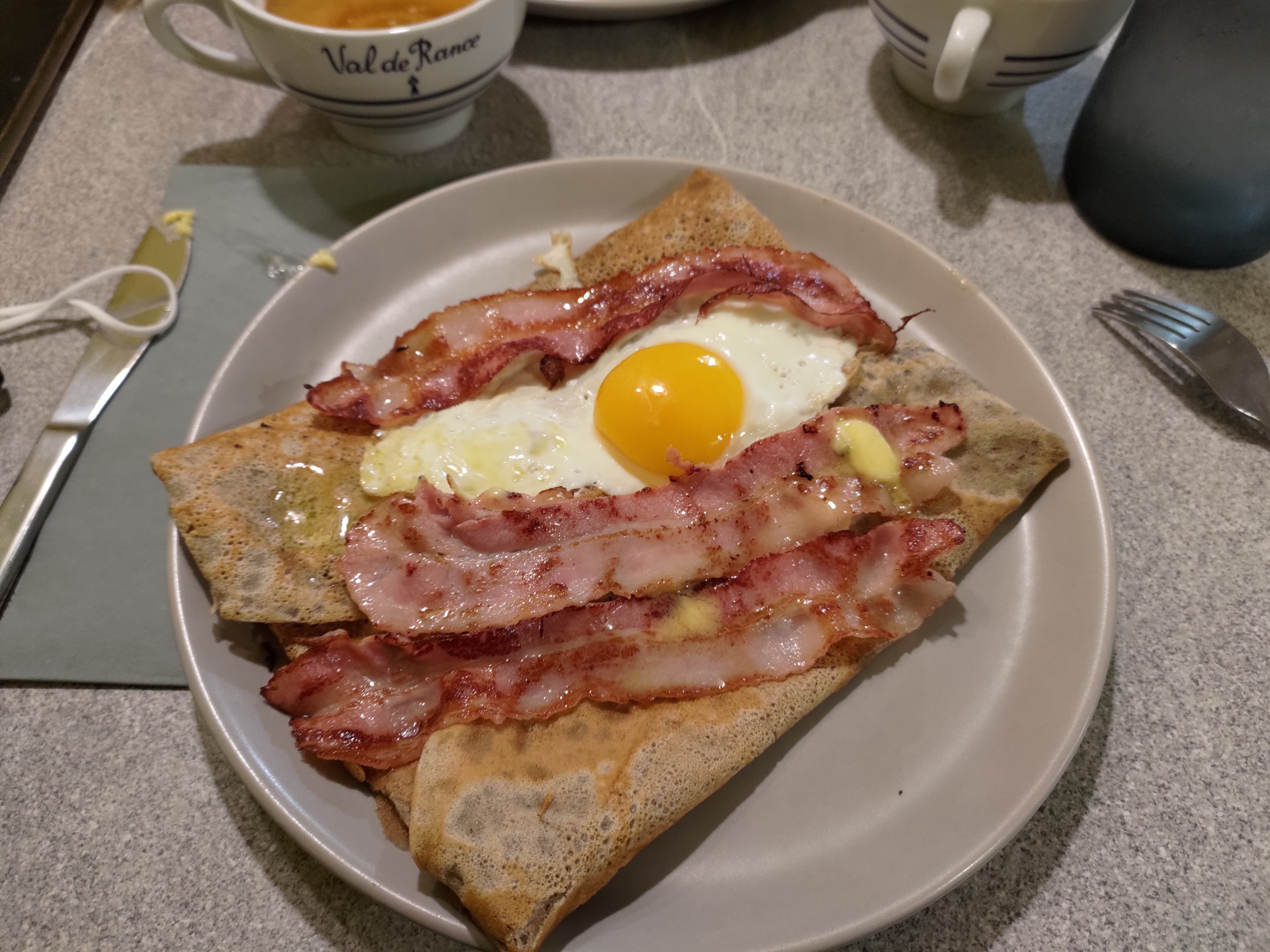 Un vrai régal j'ai mangé en terrasse évidemment une crêpe au sarrasin à l'andouille de Guémené et oeuf , délicieux !