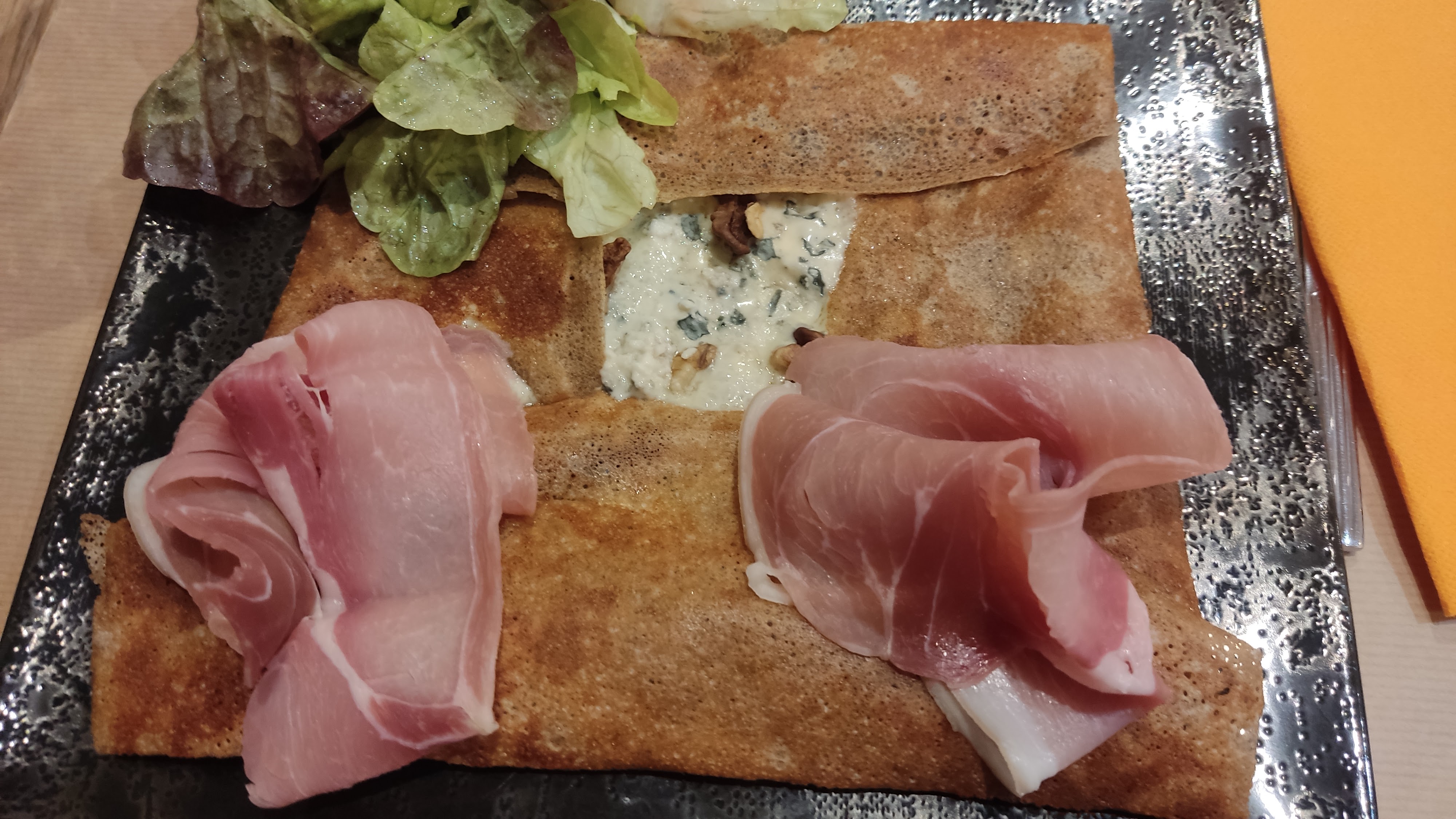 Posté le 19/12/2022 à 11:35"Une crêperie qui donne un peu de vie dans le triste centre de Meymac .... Pensez à réserver car victime de son succès c est souvent complet. Accueil chaleureux, souriant et commerçant Vous pourrez déguster des crêpes qui sortent de l'ordinaire car revisité avec des produits du coin . 😍😋👍 J ai pris une cantaloup saucisses/Cantal et une crêpe chocolat framboise ... Une bonne adresse à tester si vous êtes dans le coin"