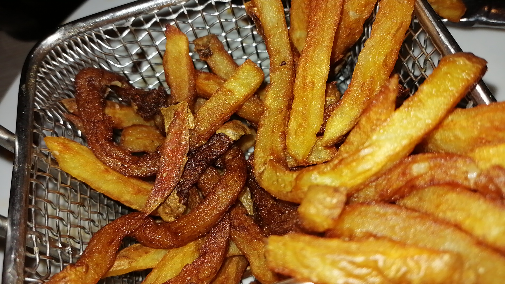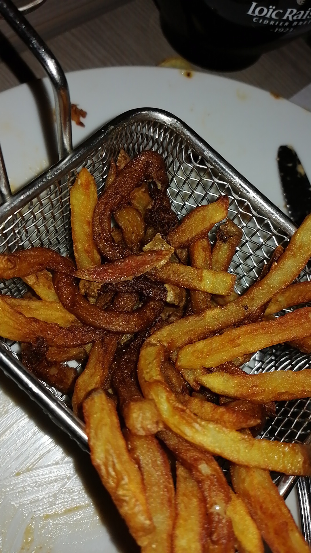 Médiocre frite trop cuite mole et gavée d'huile cidre éventé