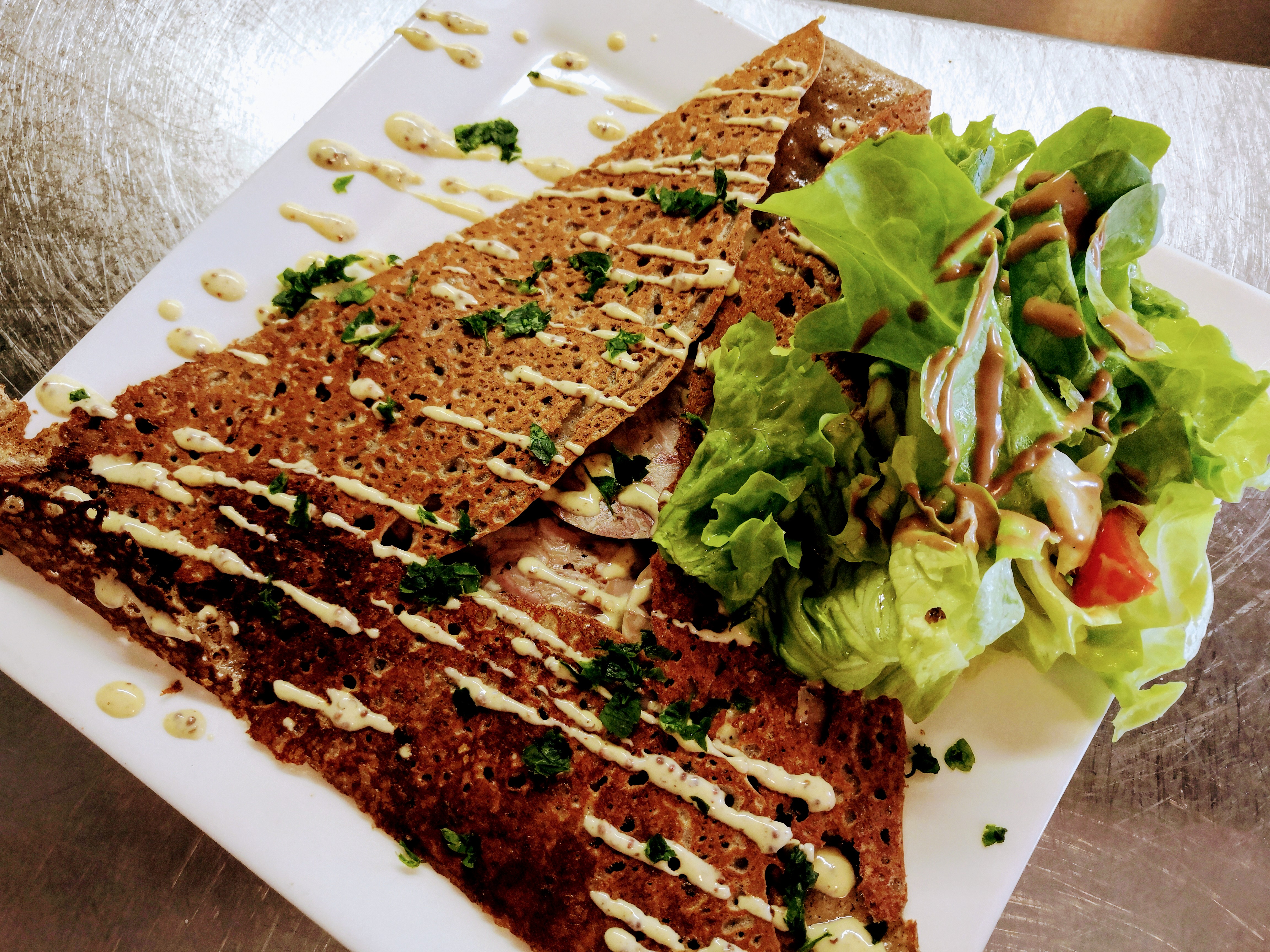 accueil chaleureux. Large choix de galettes et crêpes. il y a même une galette végétalienne au houmous et ratatouille que j'ai beaucoup aimé ! la terrasse est très agréable et au calme. Je recommande vivement.