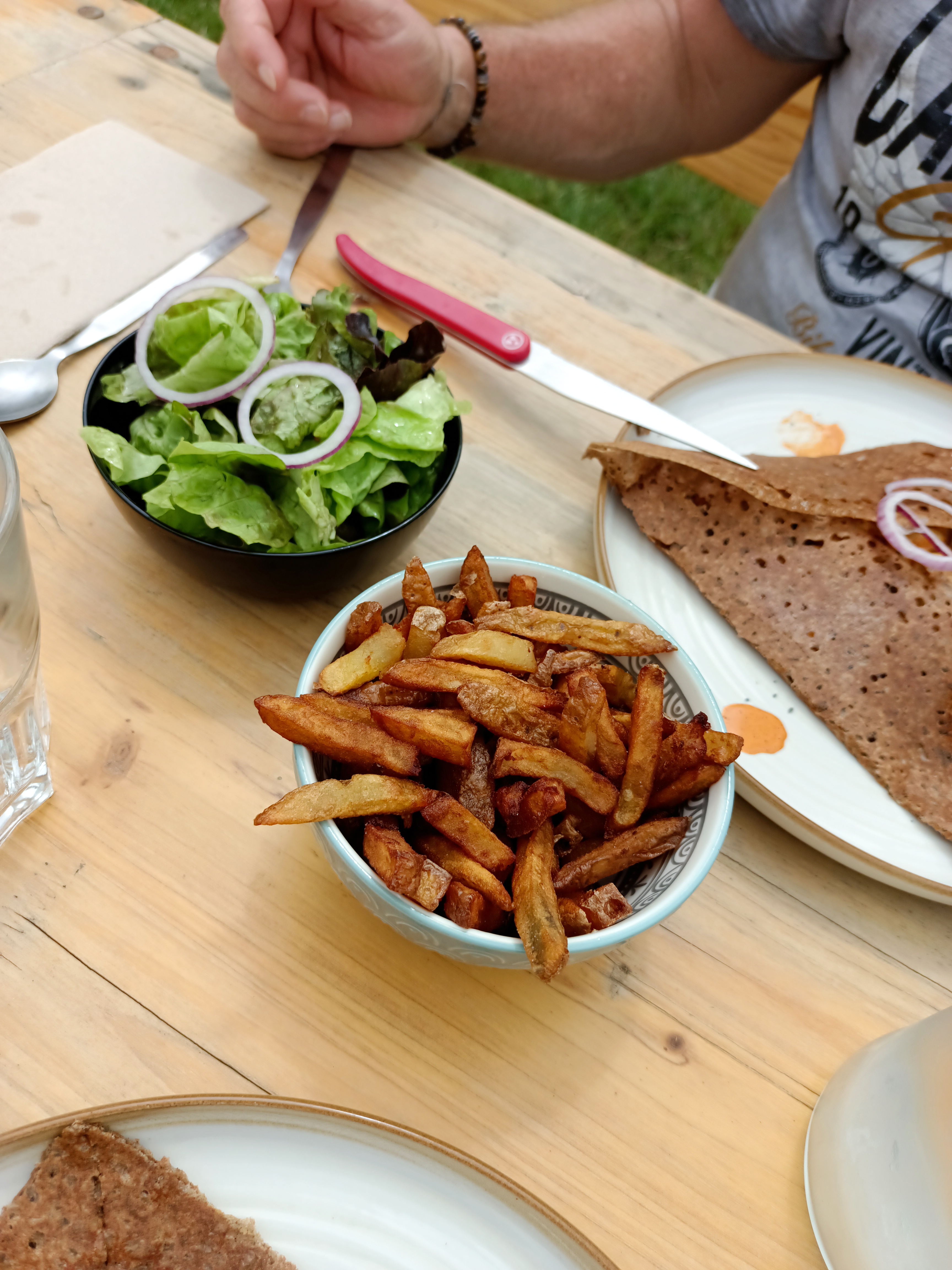Nous nous sommes régalés,les frites sont excellentes. Le personnel est très sympa et le cadre très beau (dommage pour la sécheresse).