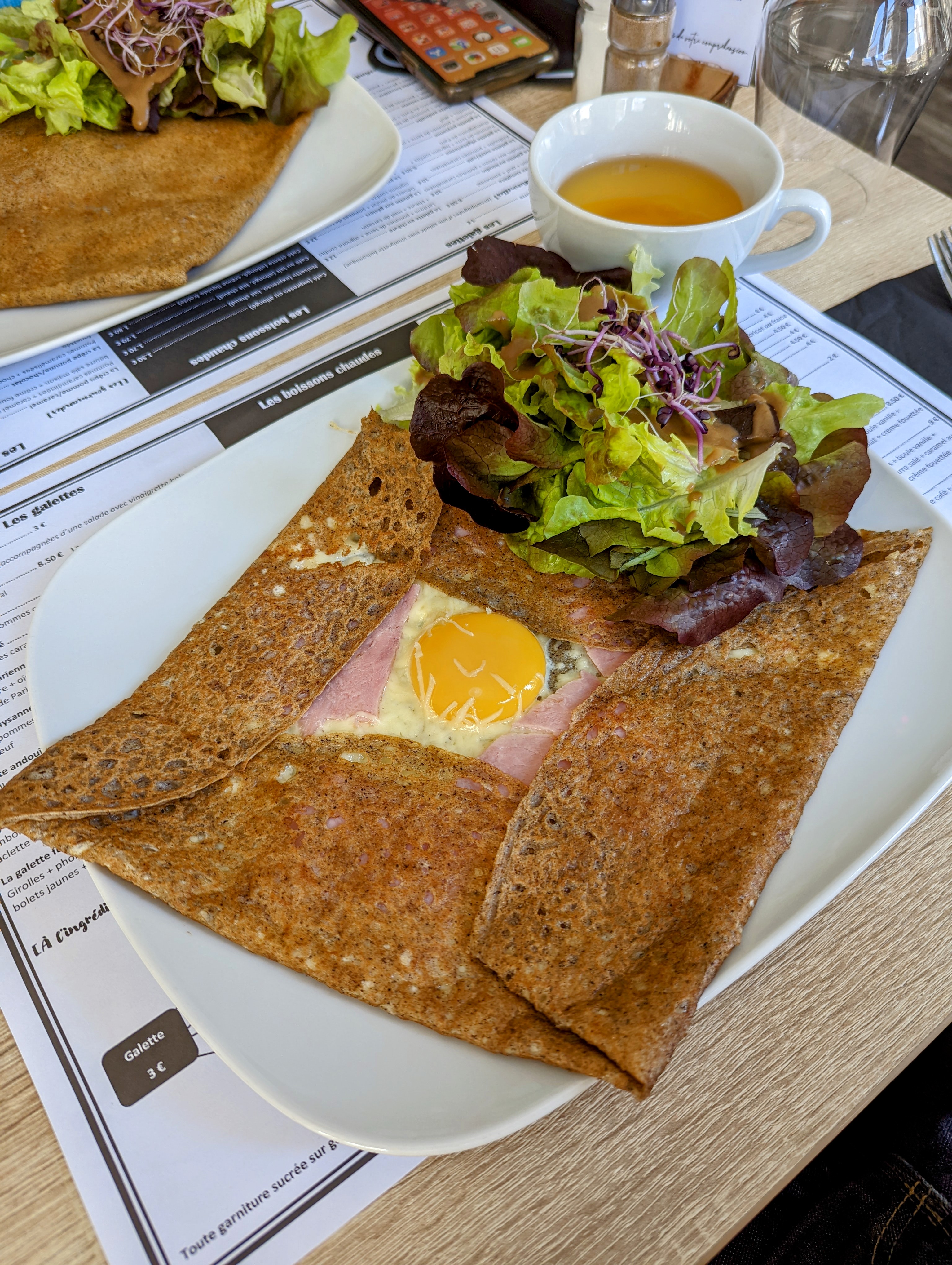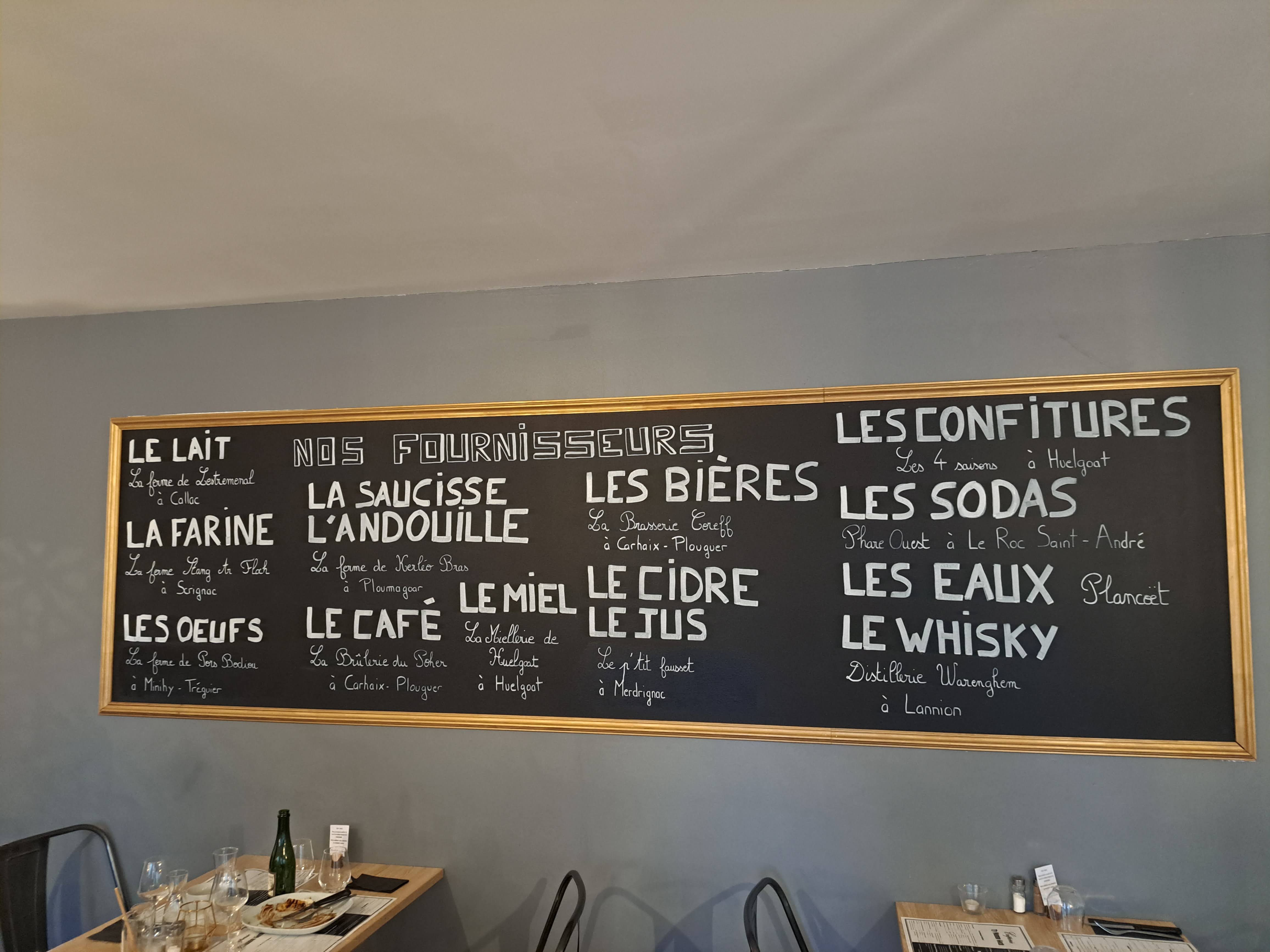 Des galettes goûteuses et généreuse et un service attentionné, souriant mais pas intrusif. Bravo 👏🏻 Afficher clairement les fournisseurs en grand c'est génial ! Je vous recommande cette crêperie 👌🏻