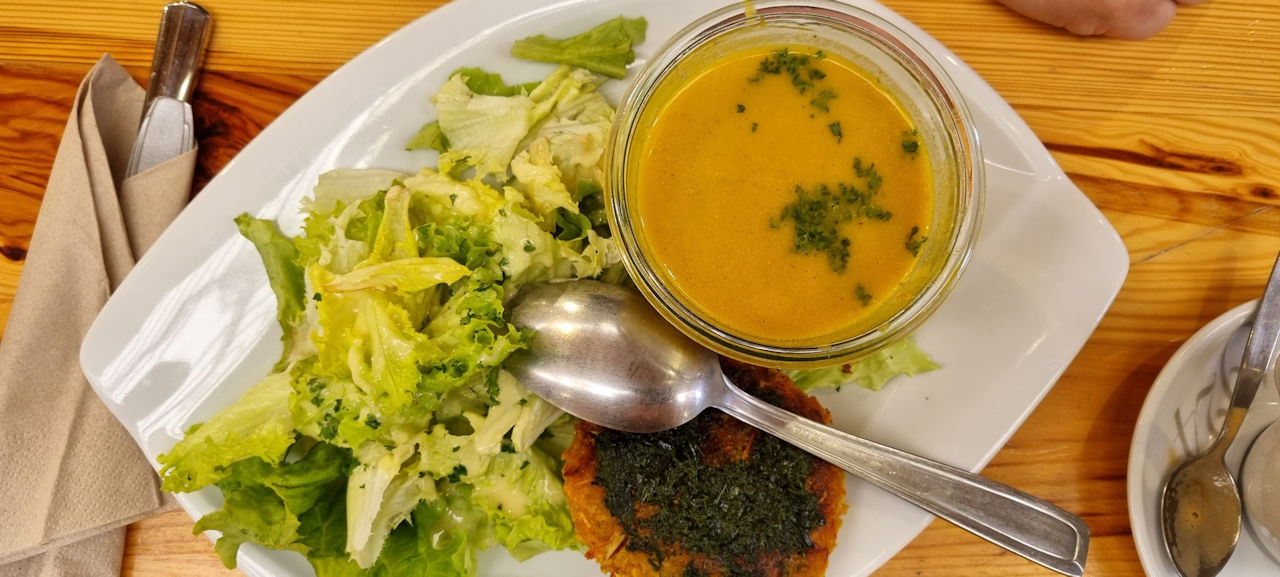 Des propriétaires charmants et extrêmement sympathiques. Vous ne trouverez pas d'option végétalienne dans la région, mais ici, vous pouvez enfin l'obtenir sans avoir à cuisiner vous-même et c'est vraiment très savoureux ! Les burgers aux pommes de terre rissolées sont délicieux tout comme le Seitan Kebap. Les gourmandises sucrées sont de petites œuvres d'art et surtout, le tout sans souffrance animale !